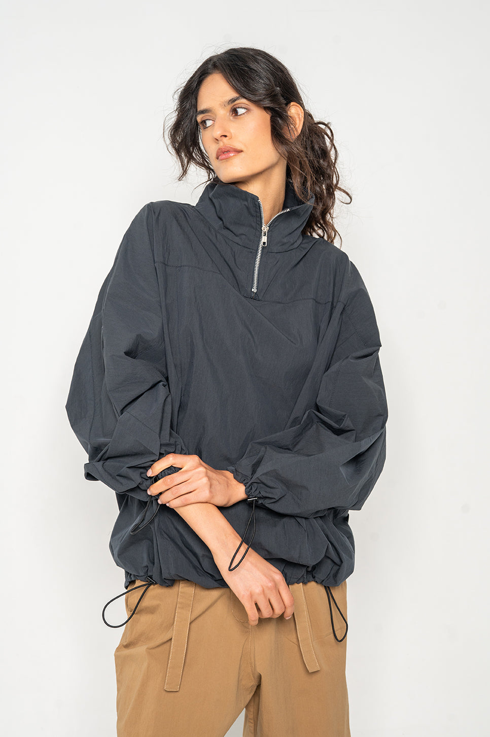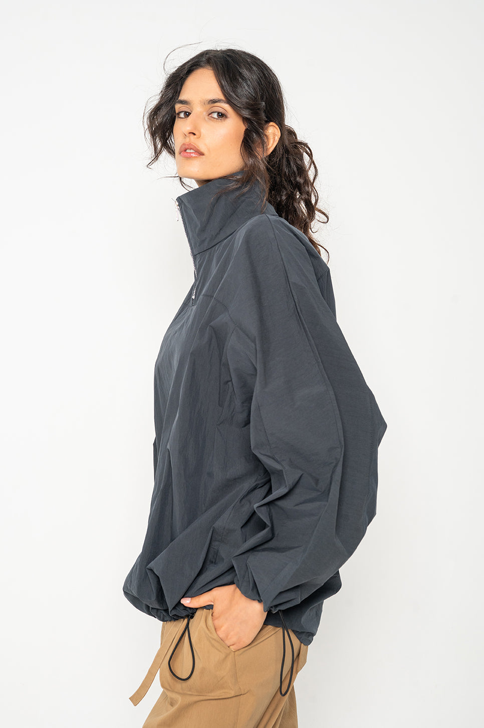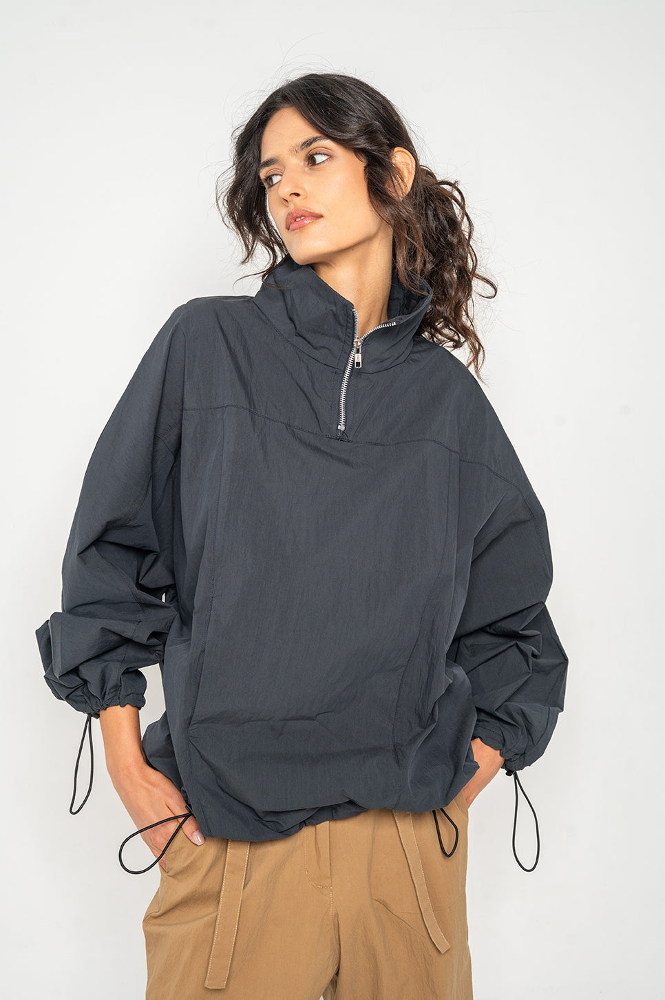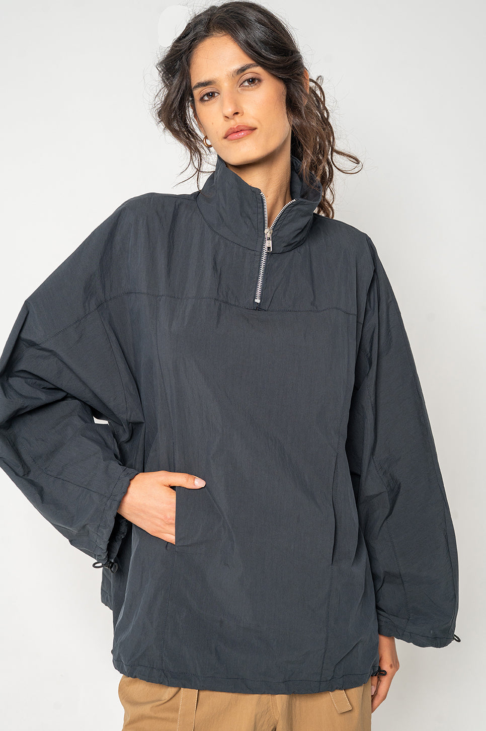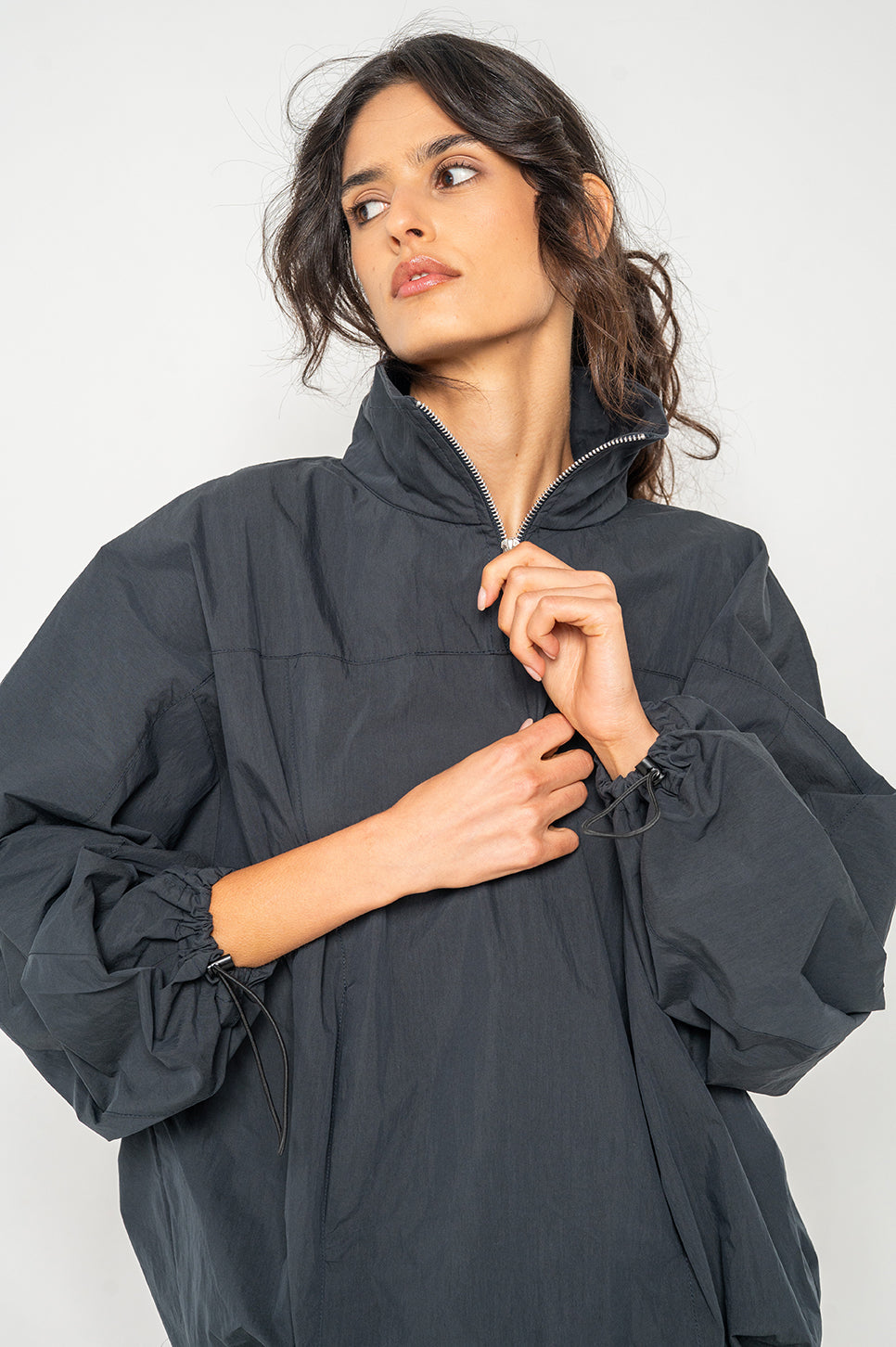 סווטשירט סטייל מעיל רוח, עם שרוולים נפוחים, קליל ודקיק מבד כותנה - ניילון.