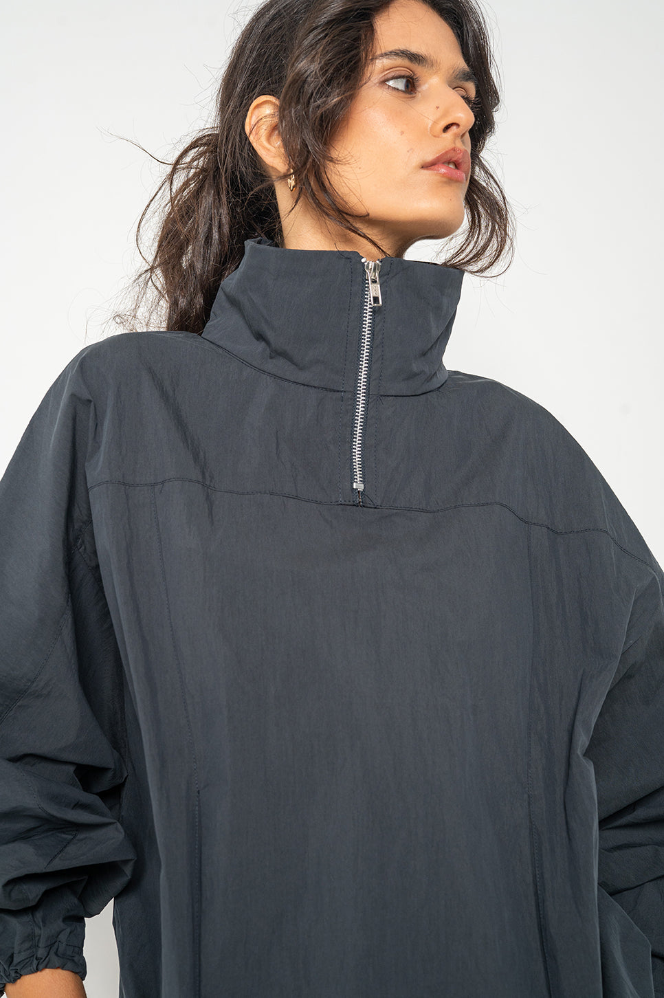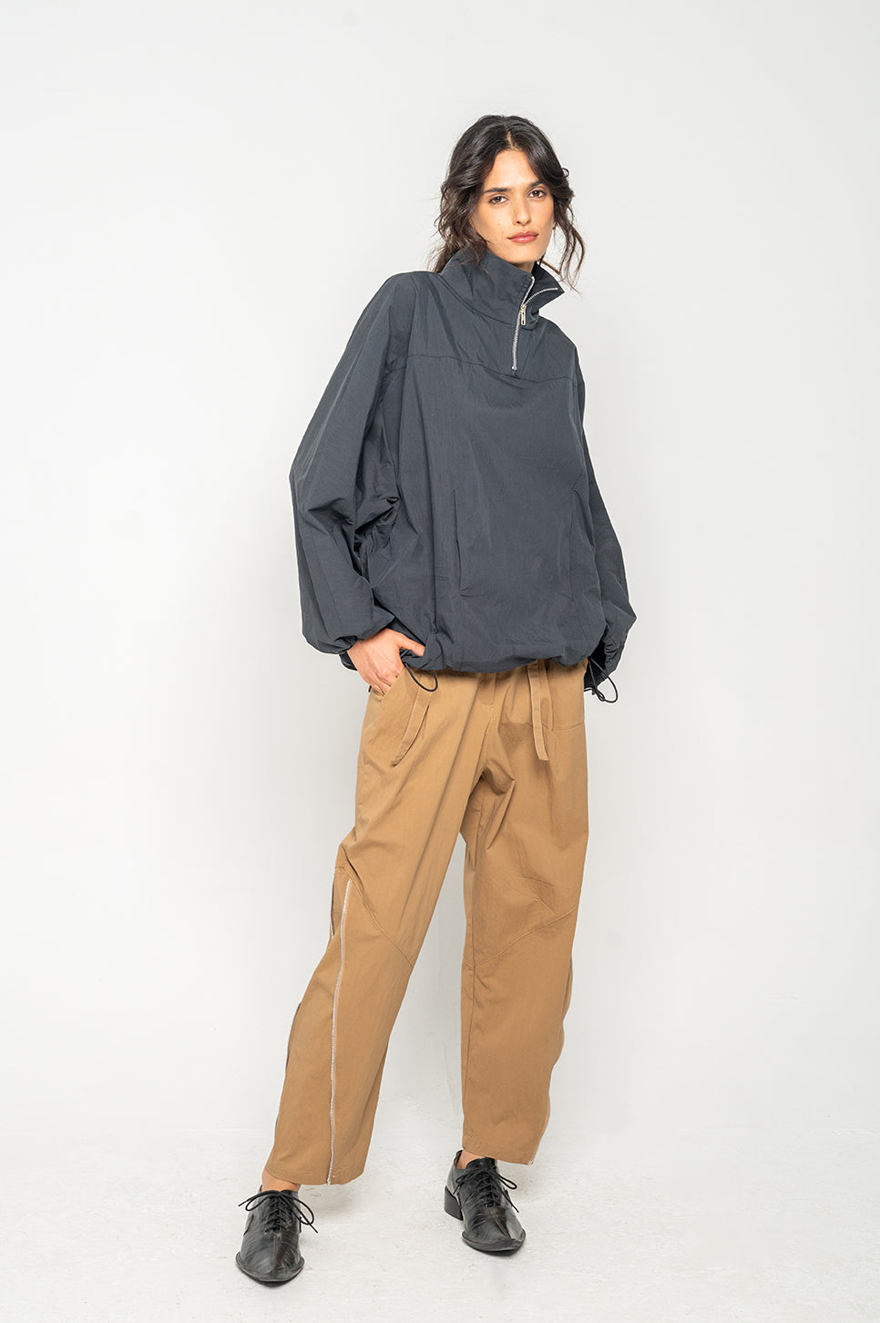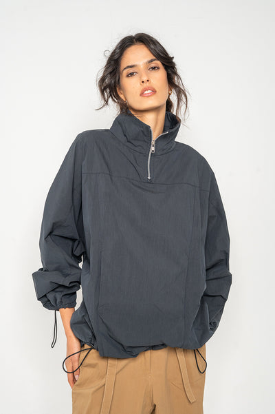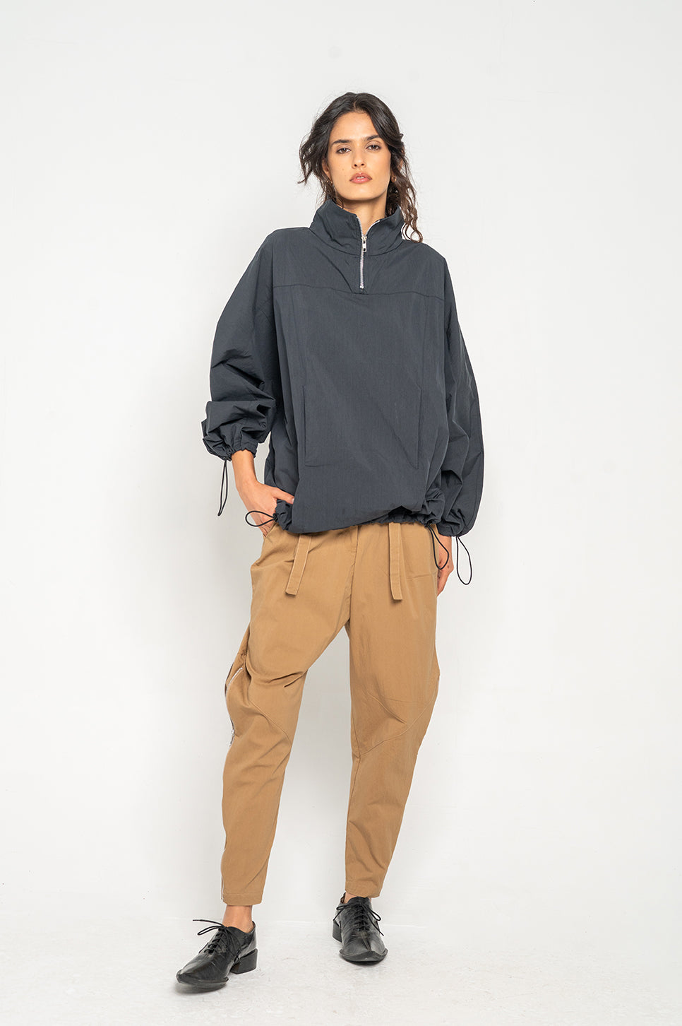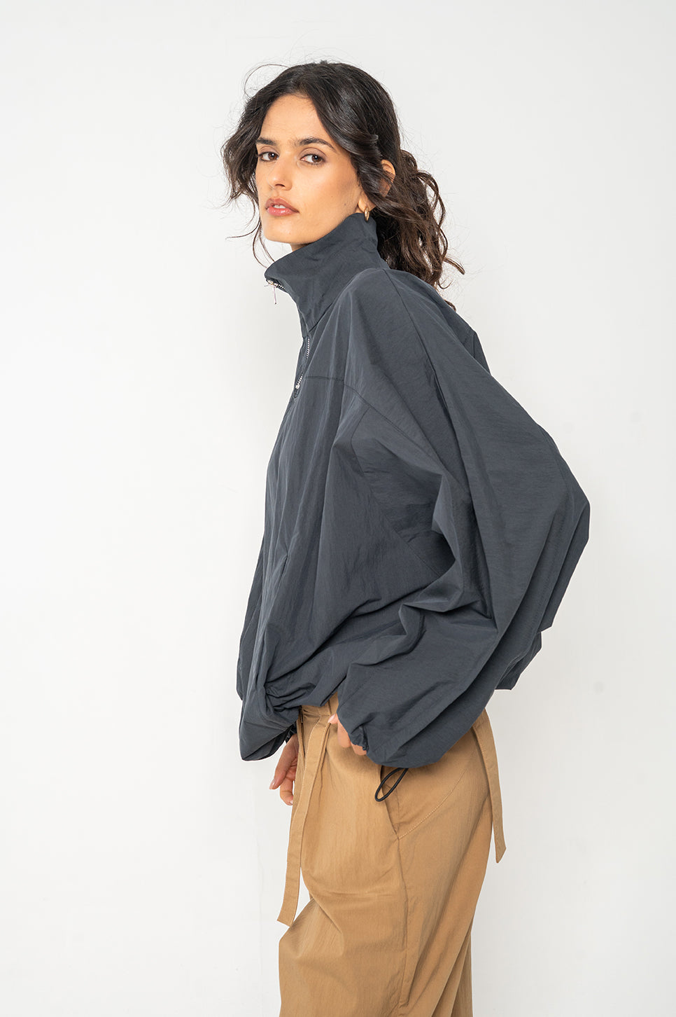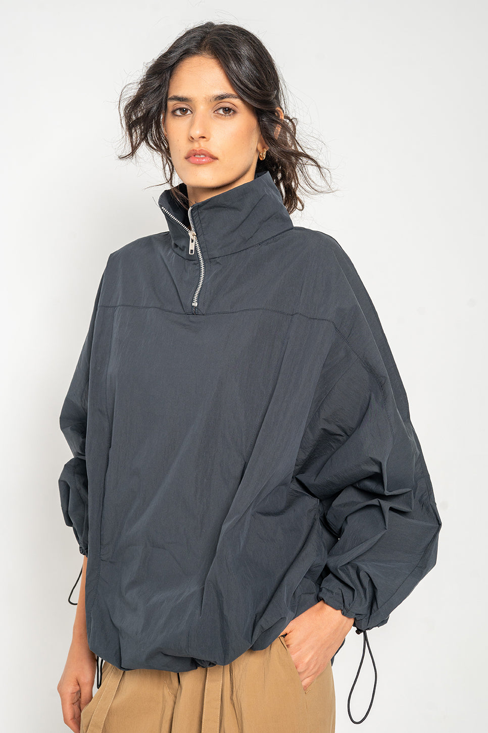 סווטשירט סטייל מעיל רוח, עם שרוולים נפוחים, קליל ודקיק מבד כותנה - ניילון.