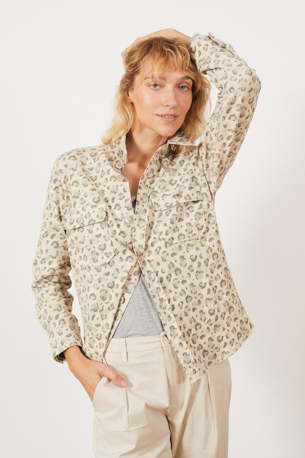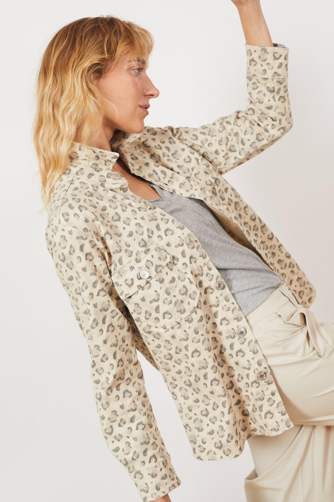 ג'קט ג'ינס מנומר עם כפתורים וצווארון.