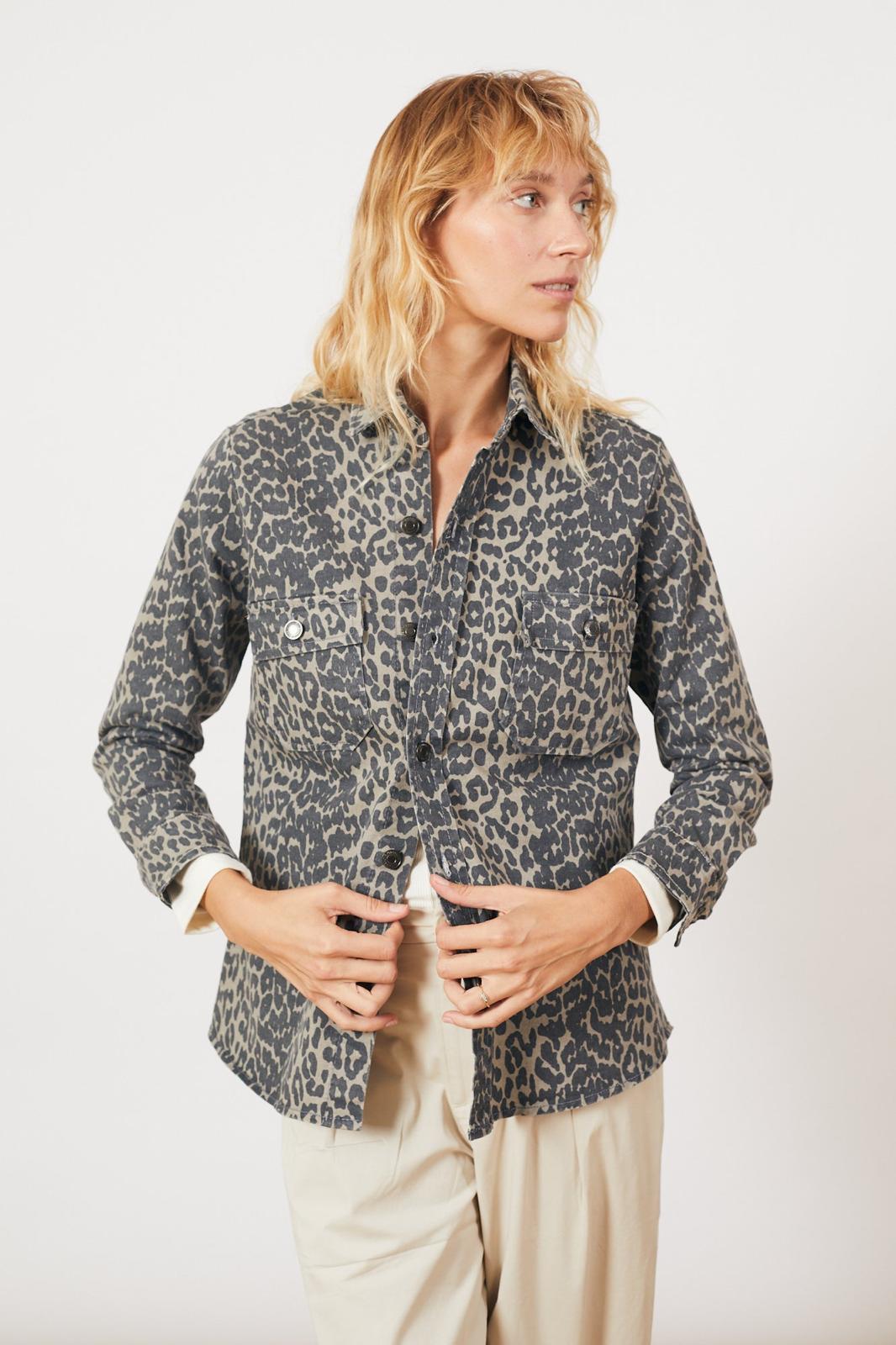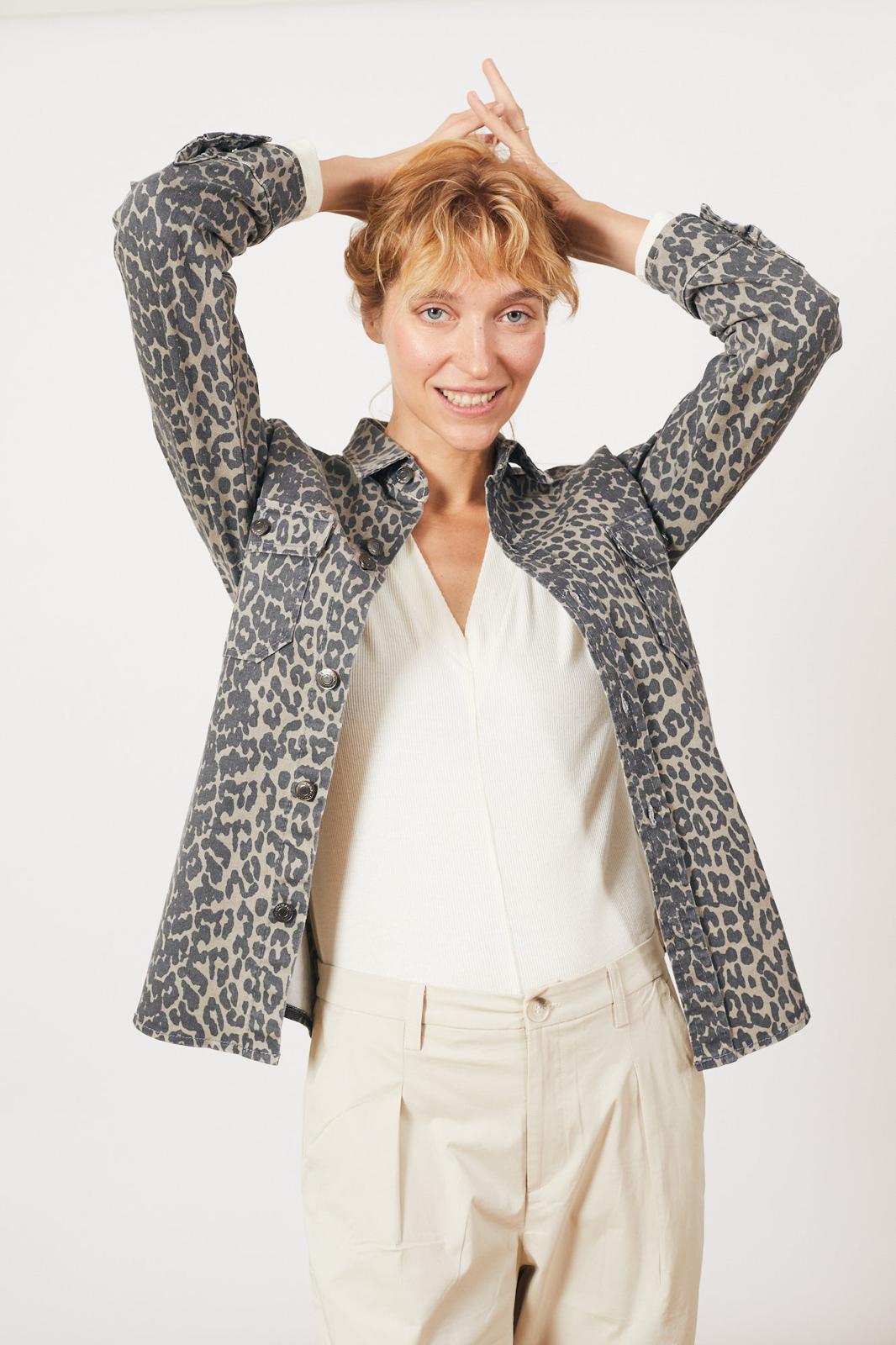 ג'קט ג'ינס מנומר עם כפתורים וצווארון.