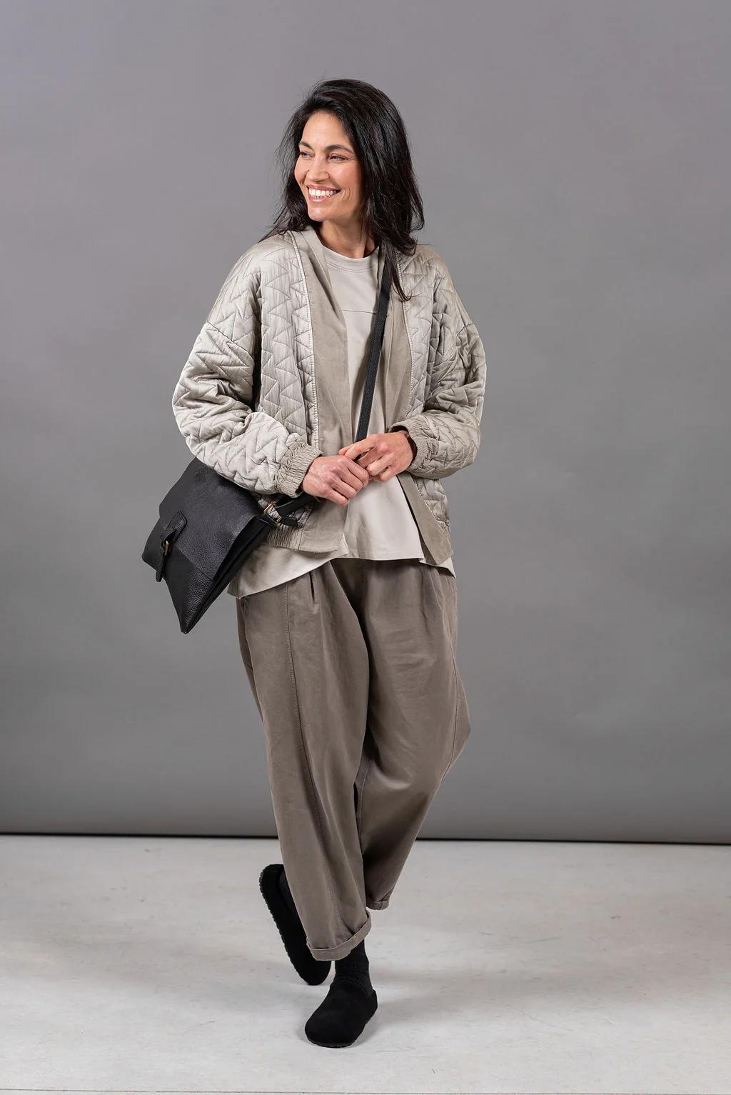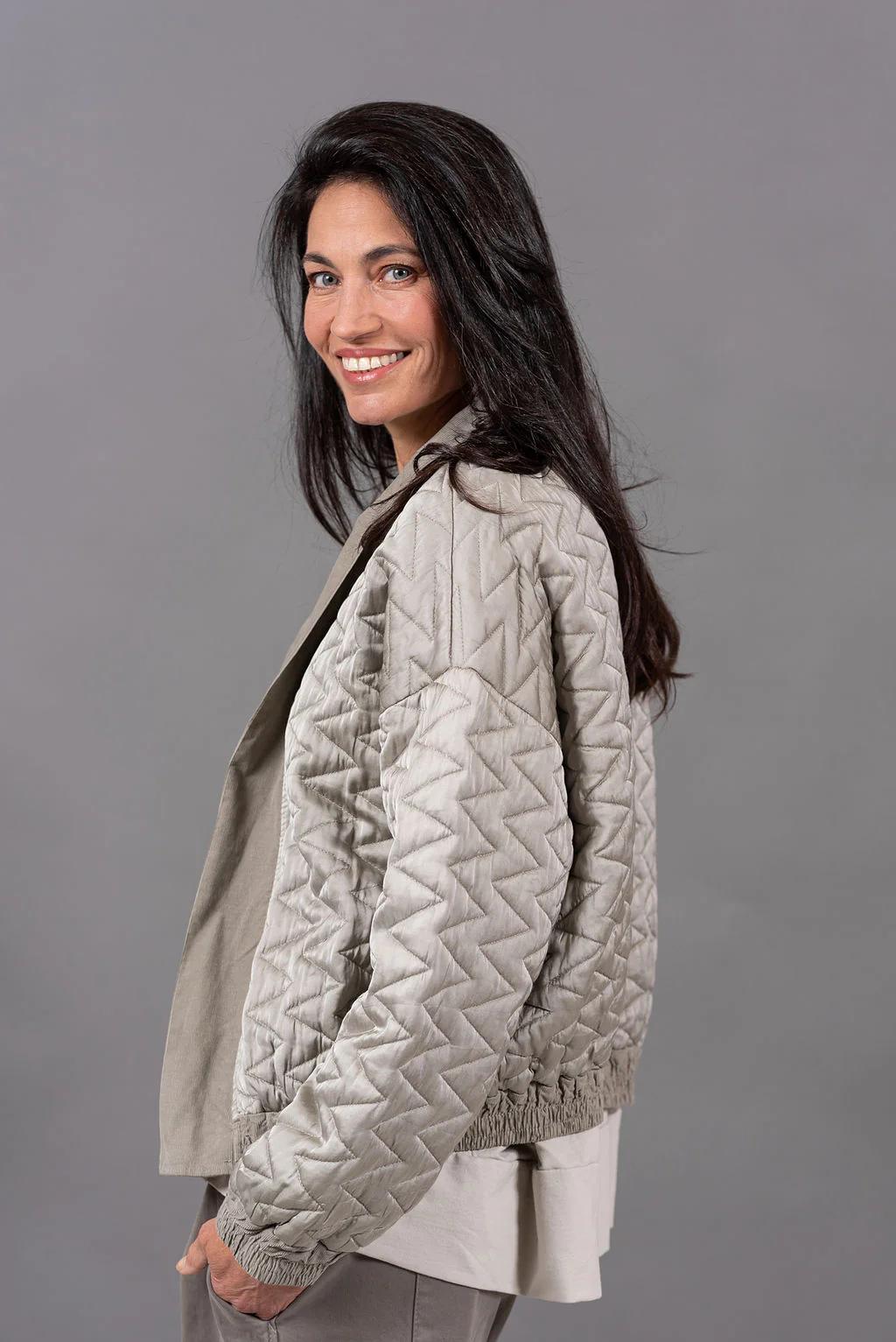 ג'קט קווילט, פתוח ונינוח. תפור מבד רך ומלטף בדוגמת זיג זג מושלמת.