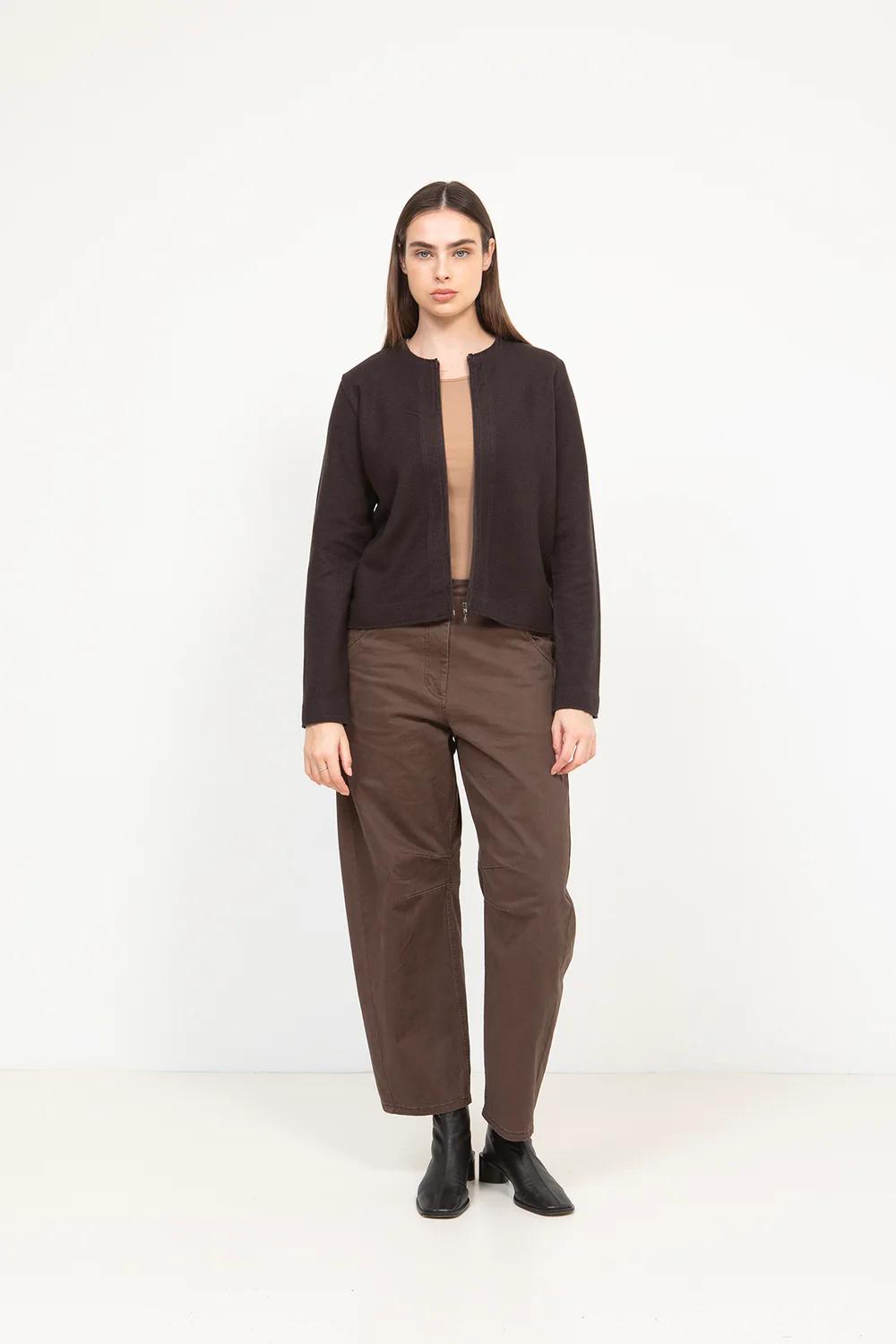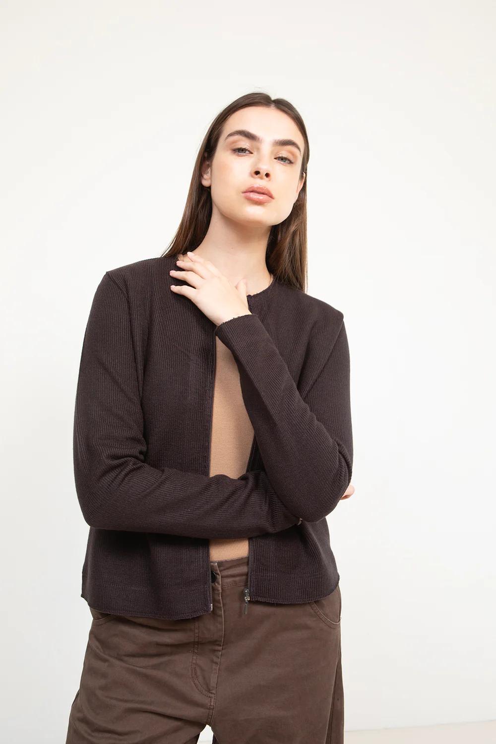 קרדיגן מעורב צמר חורפי עם סגירת רוכסן, שרוולים ארוכים.