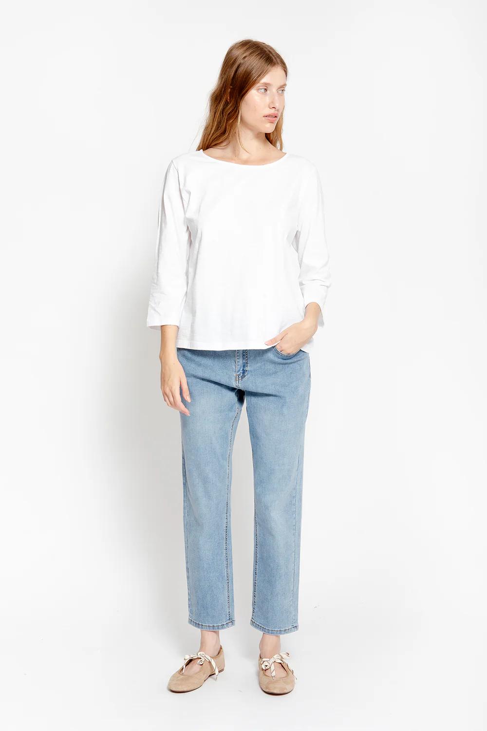 חולצת בייסיק מכותנה עם מפתח צוווארון עגול רחב.