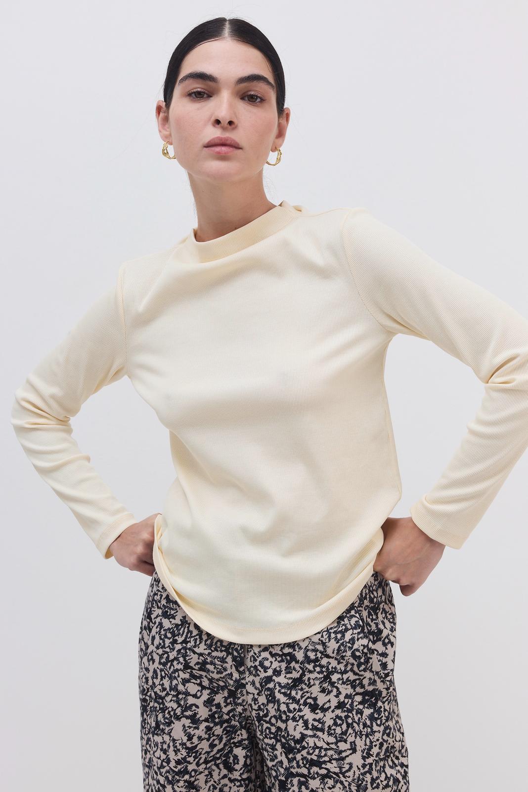 צווארון גבוה  נמוך ושרוולים ארוכים.