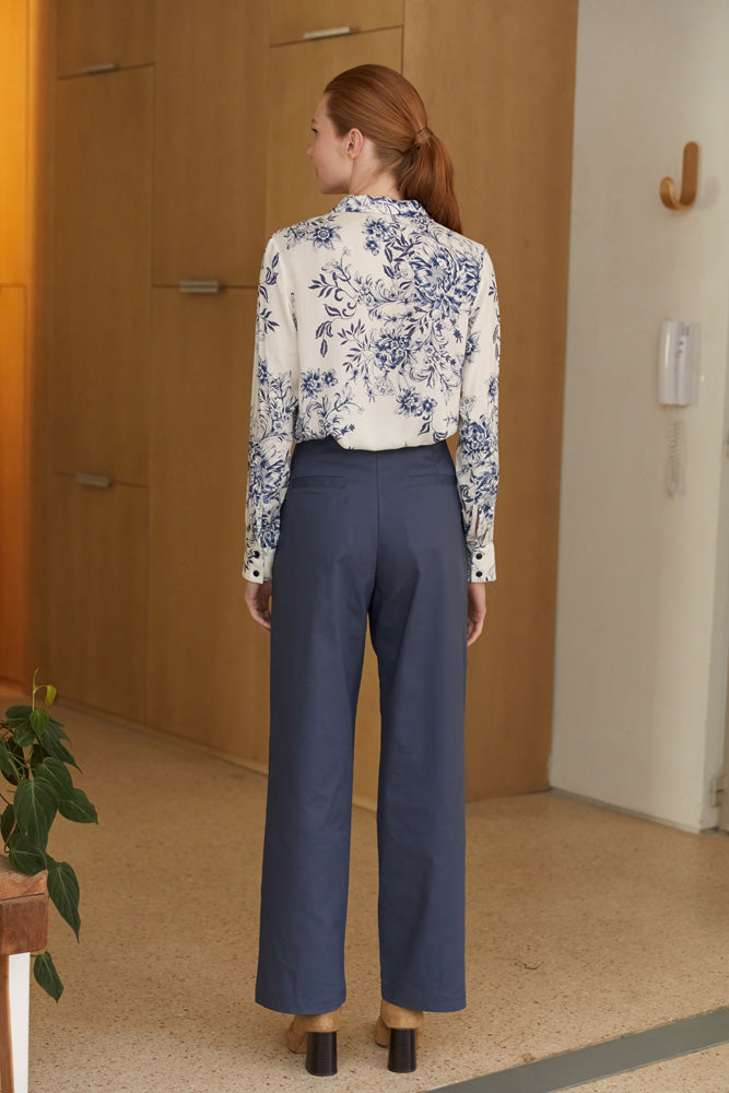 חולצה מכופתרת בגזרה ישרה, עם קפל בגב.
