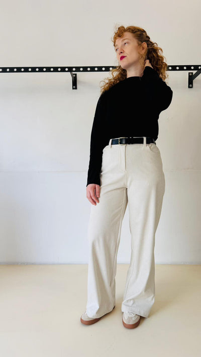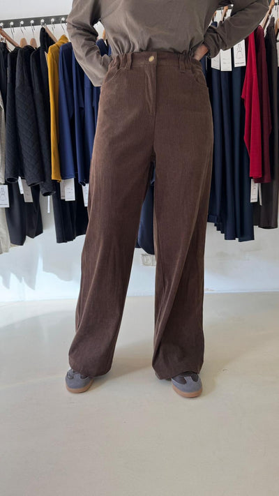 מכנסיים בצללית ישרה - חום פסי סיכה