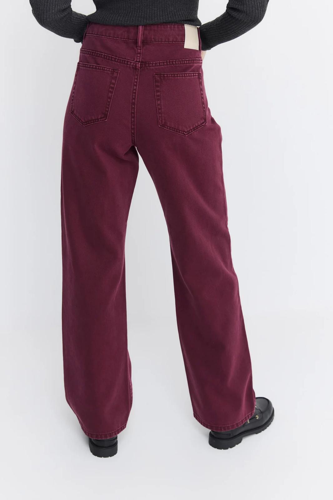 מכני כותנה בגזרה רחבה ונינוחה. למכנסיים מותן גבוהה, חמישה כיסים וסגירת כפתור ורוכסן קלאסית.