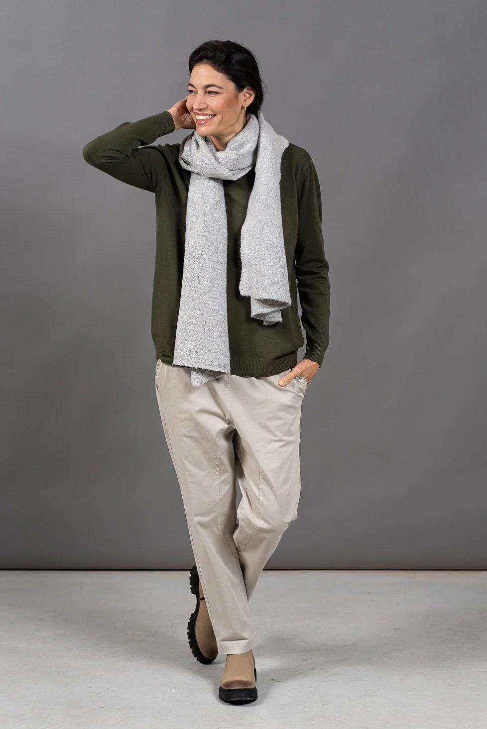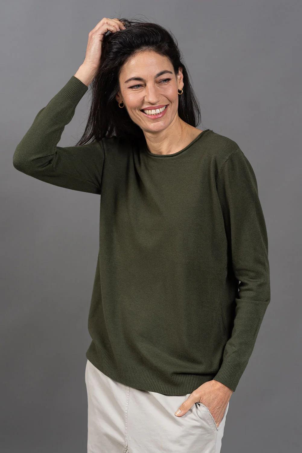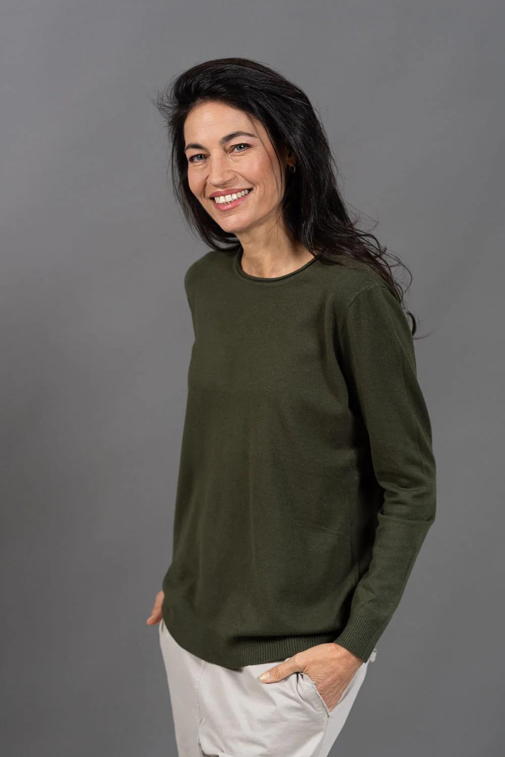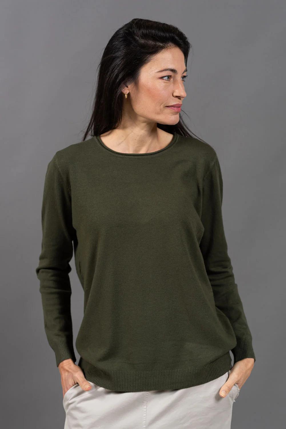 סריג בייסיק איכותי, עם צווארון עגול נעים ומדויק.