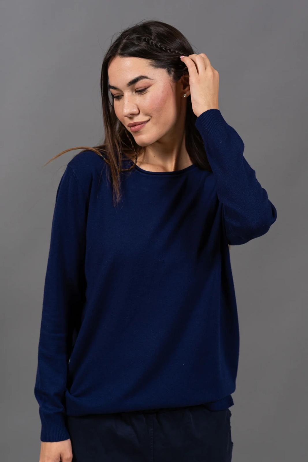 סריג בייסיק איכותי, עם צווארון עגול נעים ומדויק.