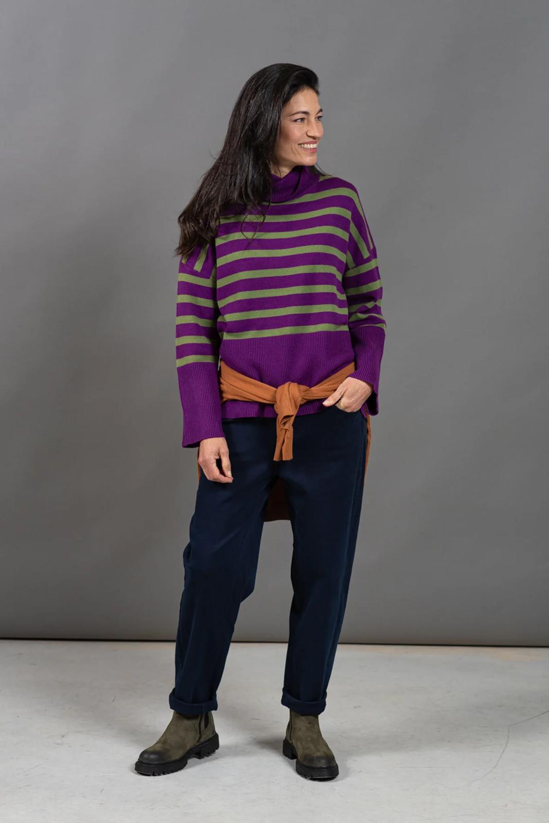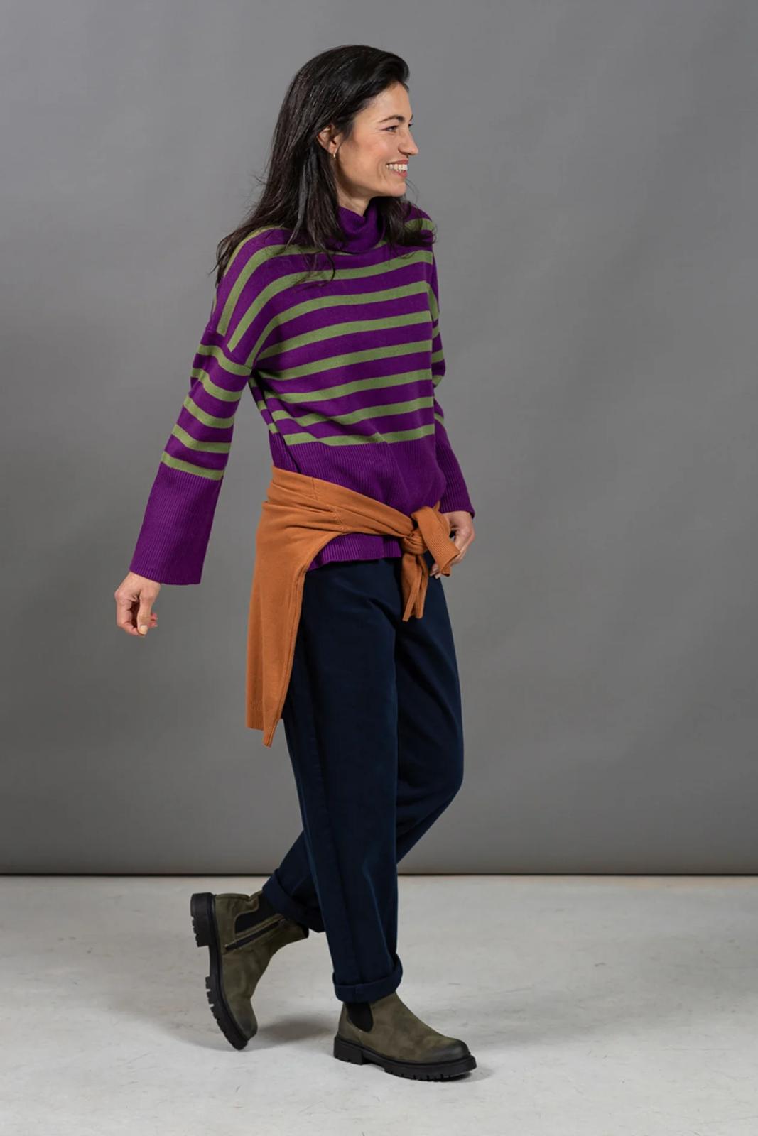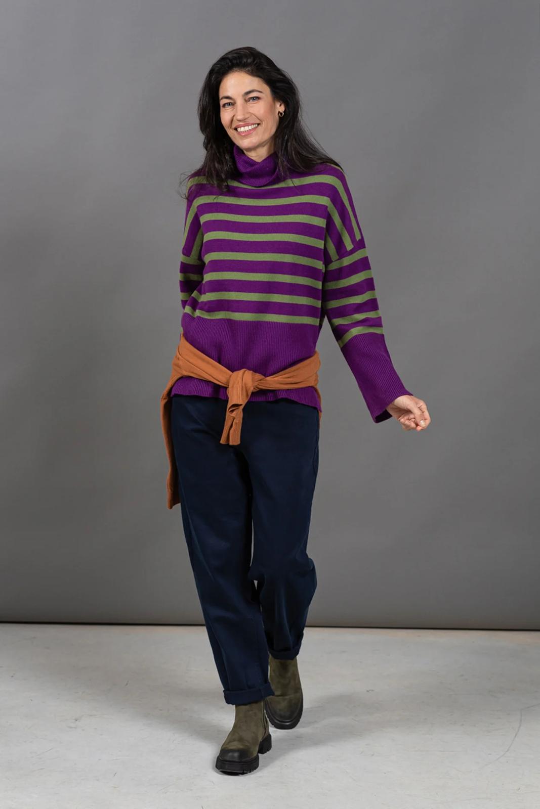 הפסים מוסיפים עניין וצבעוניות בדיוק במידה הנכונה והופכים אותו לפריט חורפי שקל להתאהב בו.