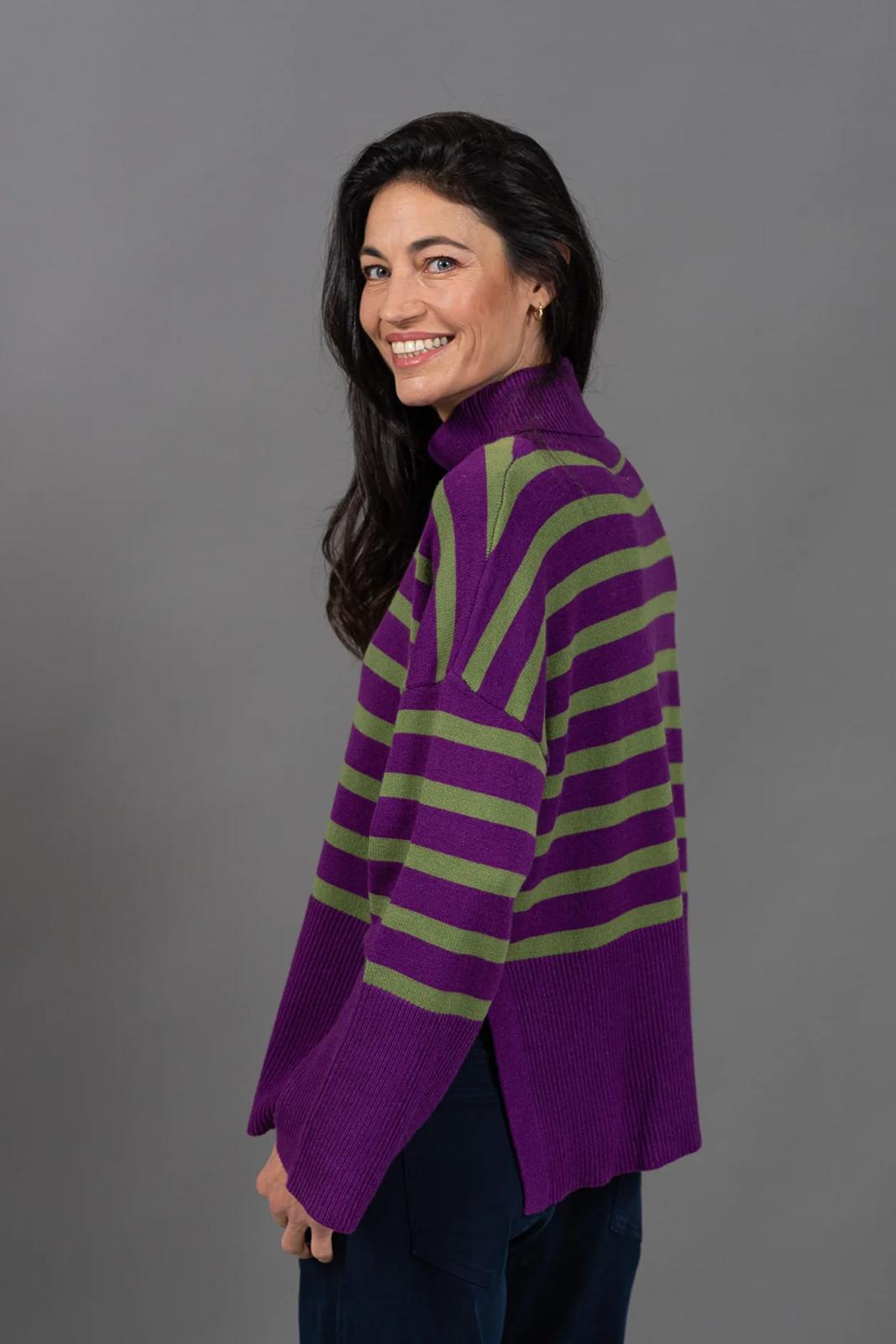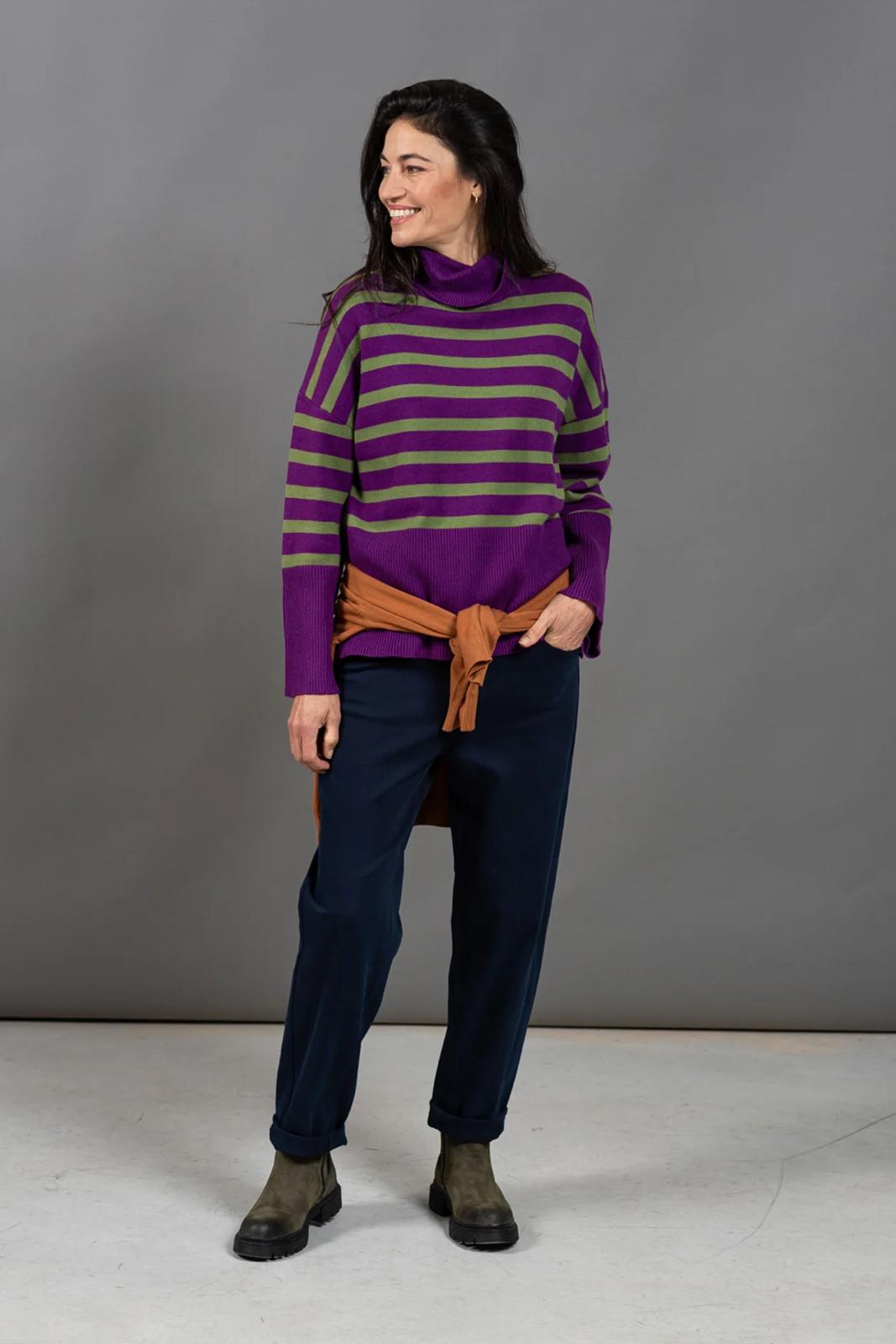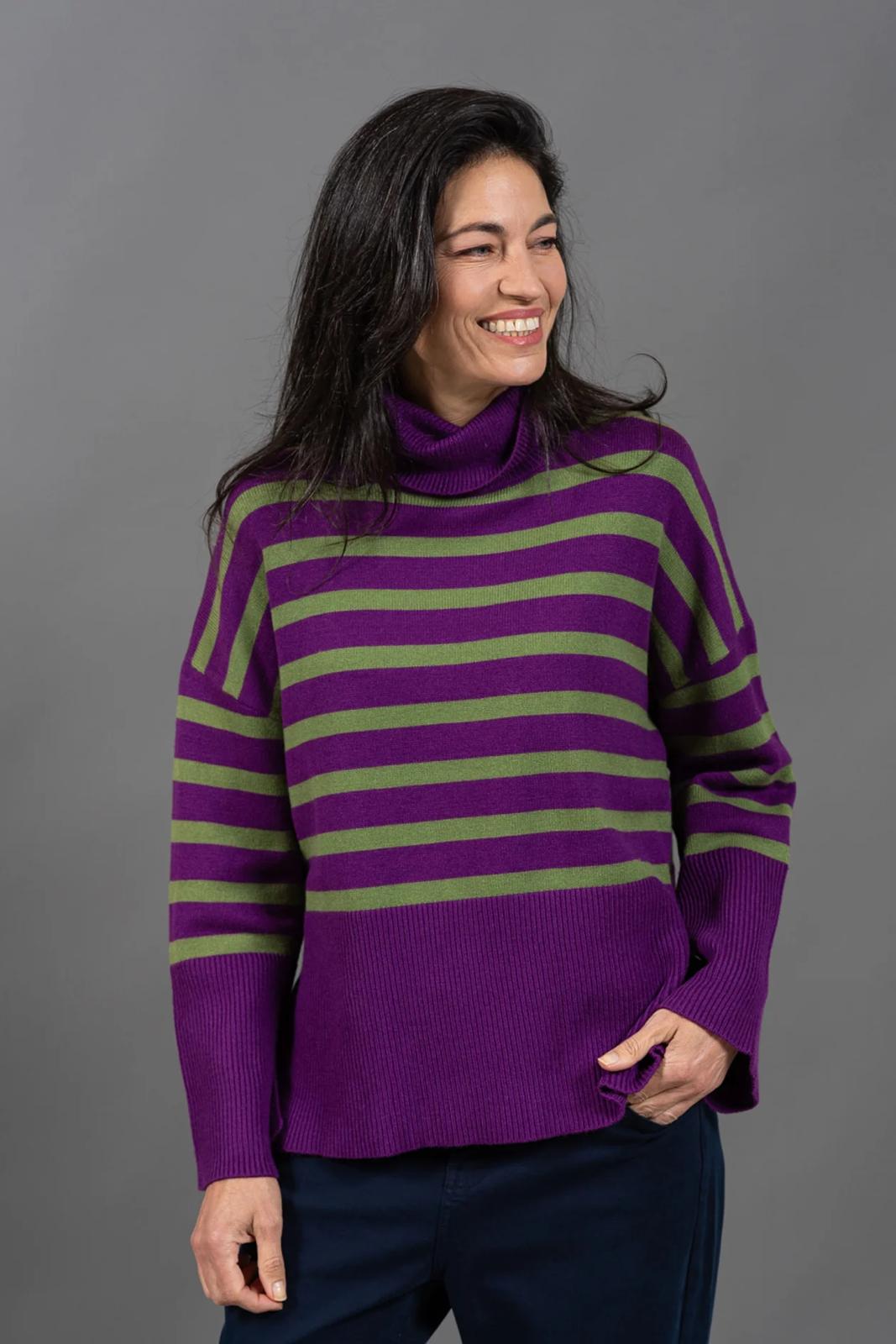 הפסים מוסיפים עניין וצבעוניות בדיוק במידה הנכונה והופכים אותו לפריט חורפי שקל להתאהב בו.