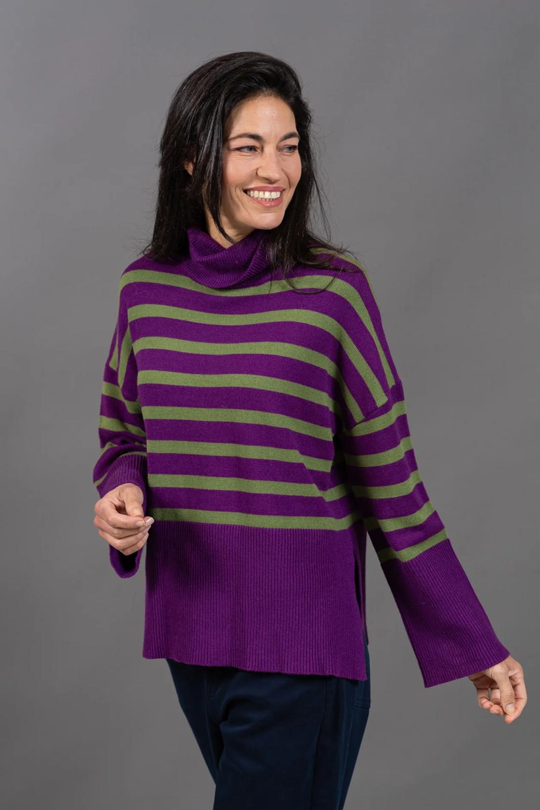 סריג פסים עם שרוולים מעט מתרחבים. הסריג רך ונעים בטירוף והגולף העדין מעניק מראה עוטף ונינוח.