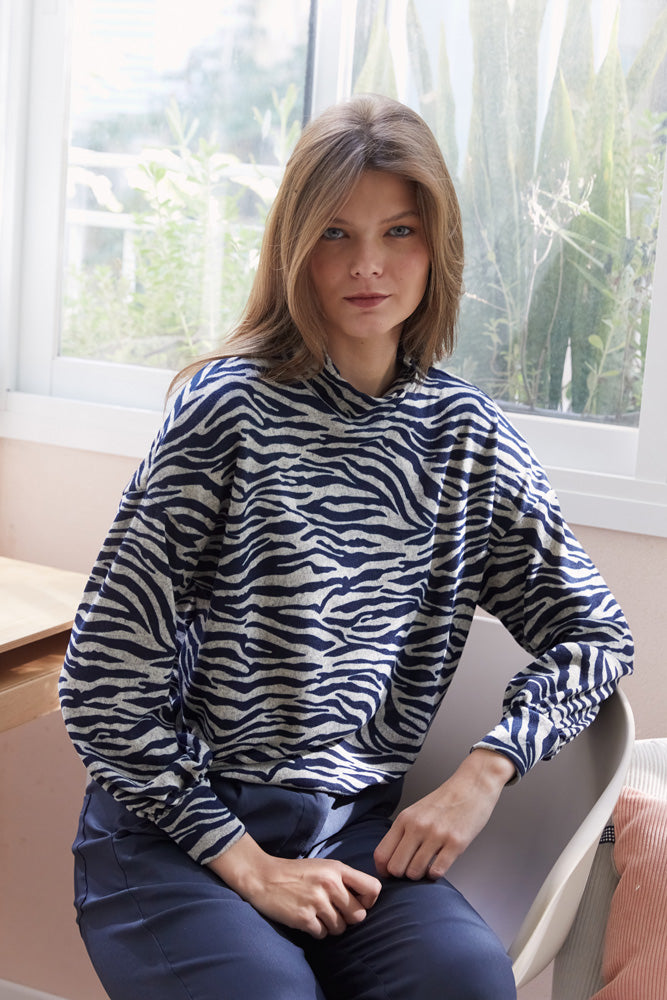 חולצת סריג בגזרה ישרה בעלת כפתורים בכתף. וצווארון גולף שניתן לפתוח.