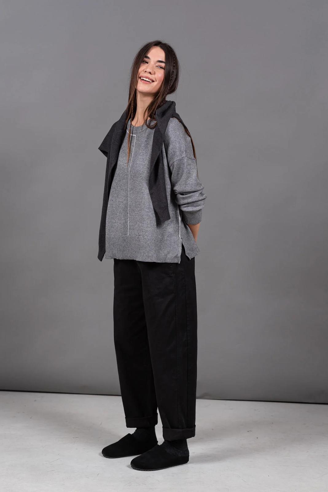 צווארון עגול ונוח שמשלים את העיצוב הקלאסי של הסריג