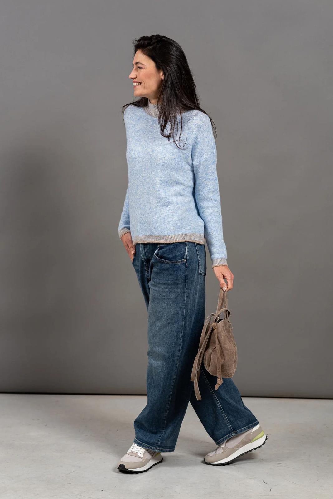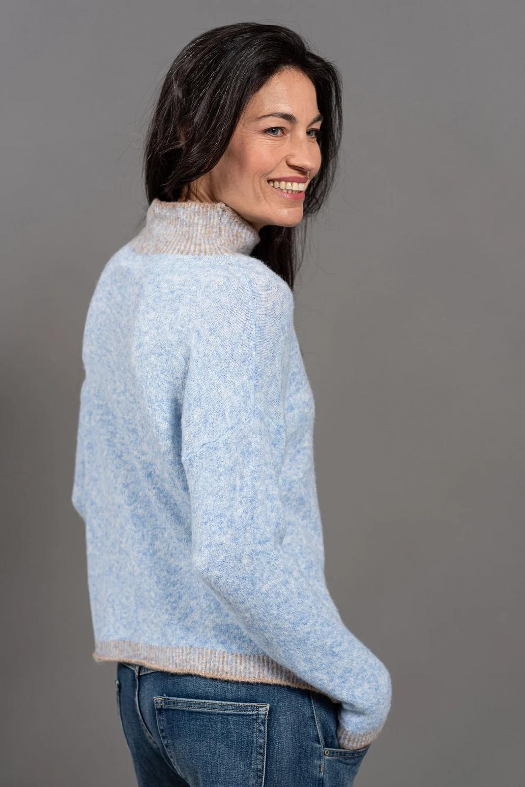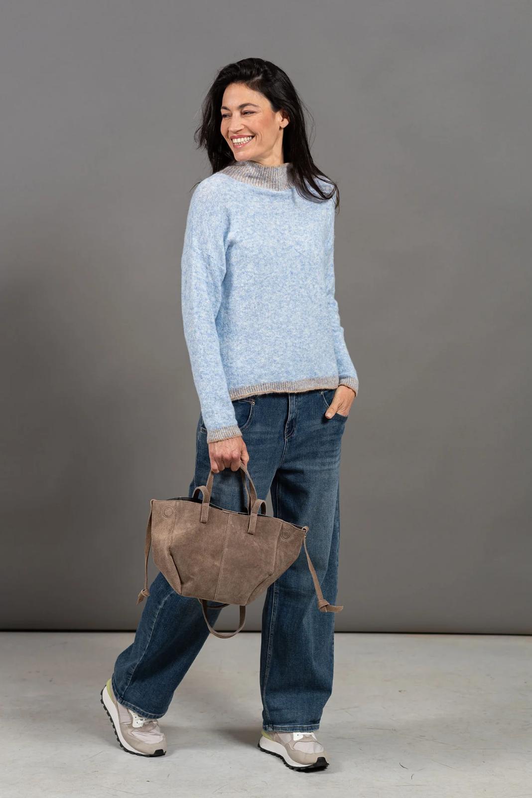 עם שילוב צבעים עדין בצווארון, במכפלת  ובשרוולים, שמוסיף גימור מעוצב ונקי.