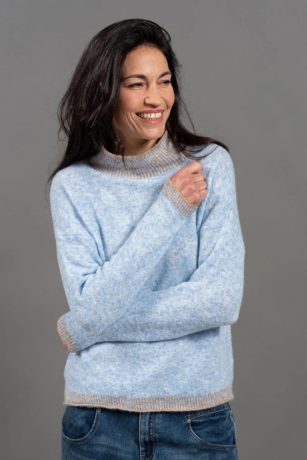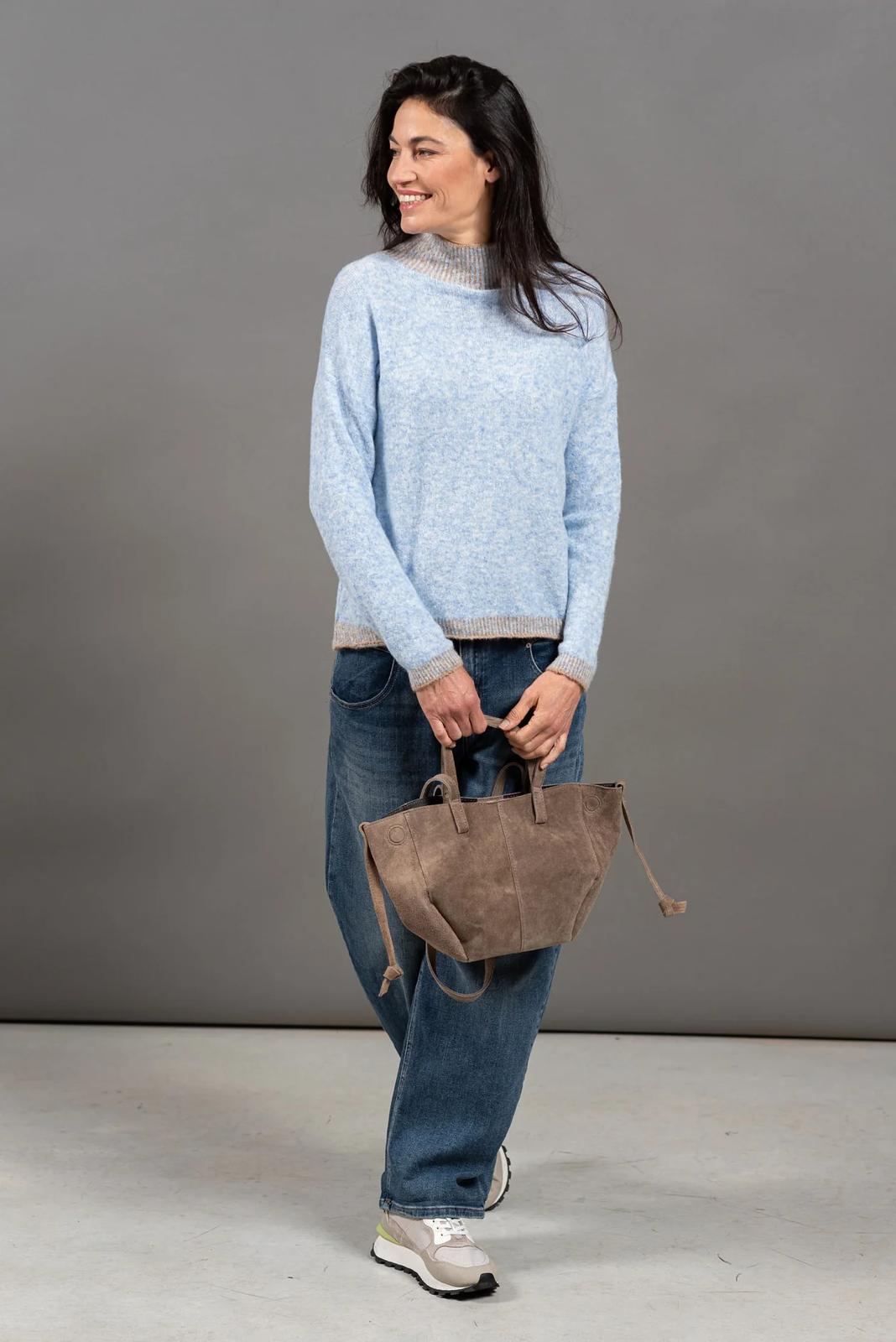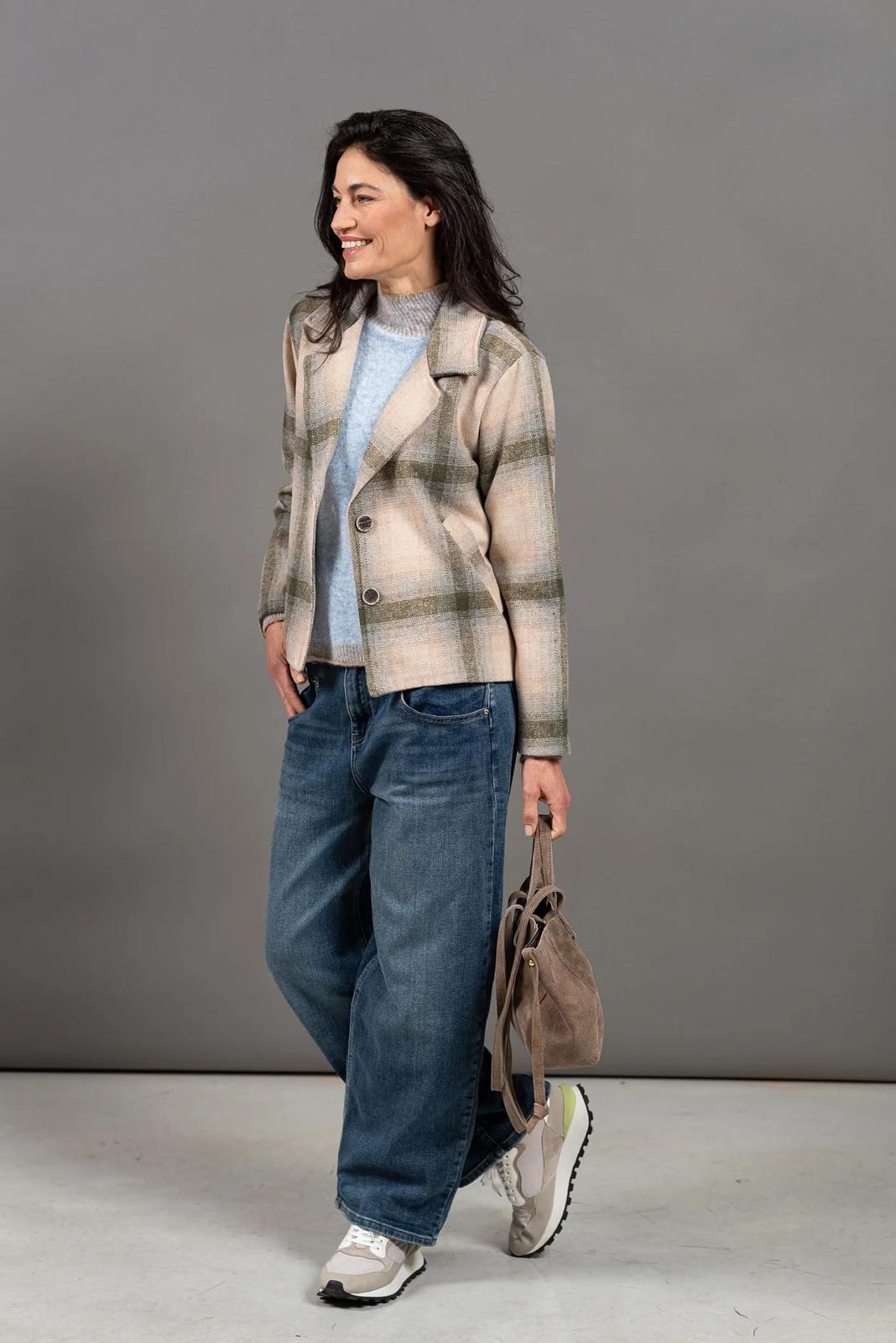 עם שילוב צבעים עדין בצווארון, במכפלת  ובשרוולים, שמוסיף גימור מעוצב ונקי.