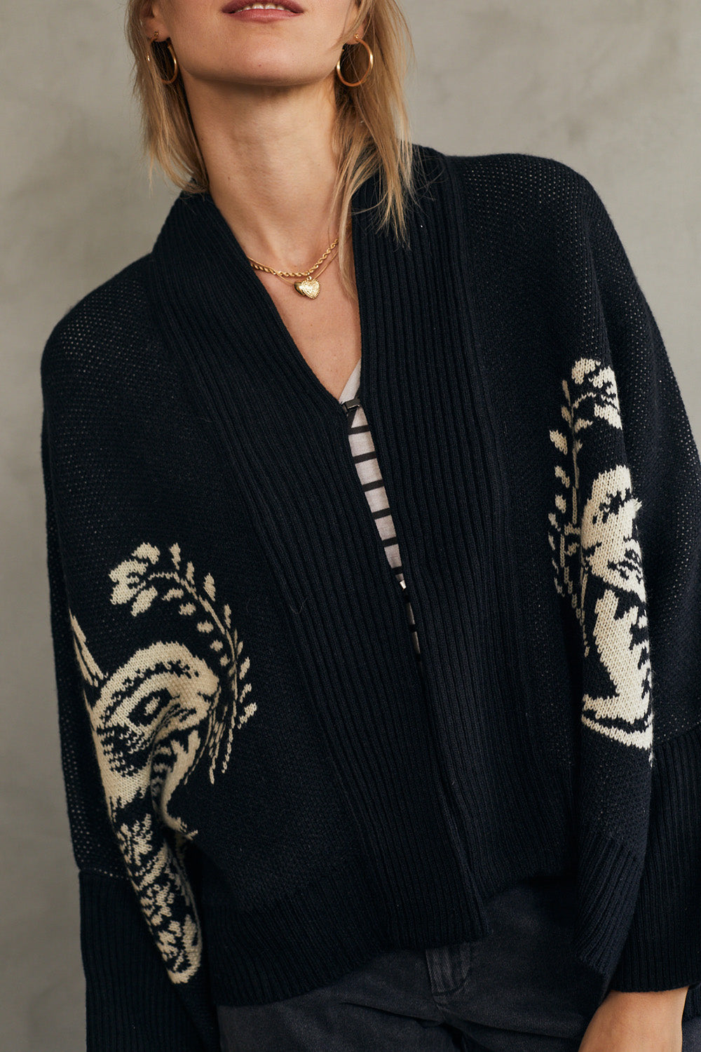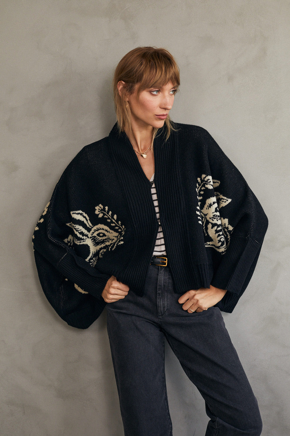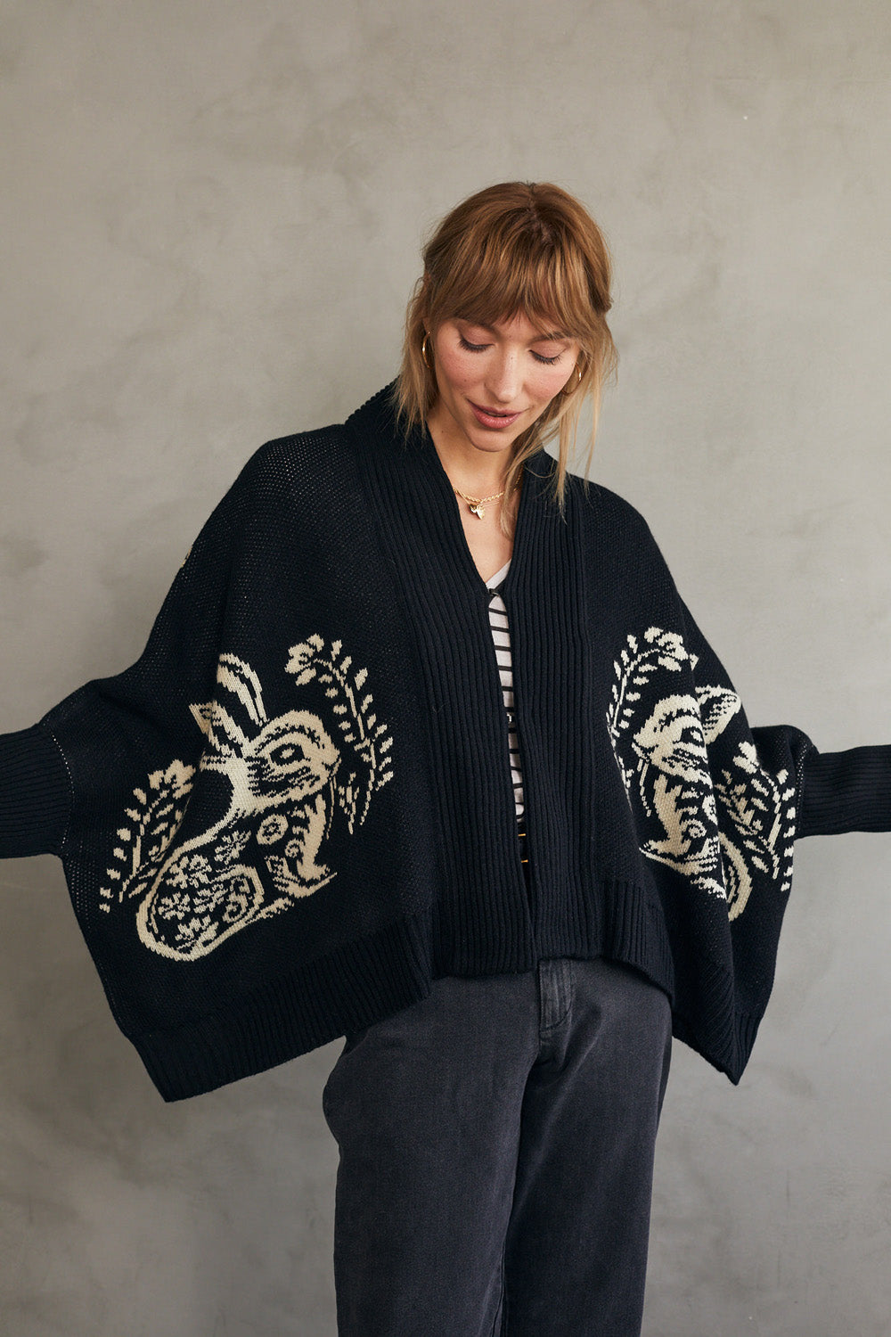 קרדיגן סוודר בגזרת אוברסייז עם דוגמת ארנב (באני) היסטרית.