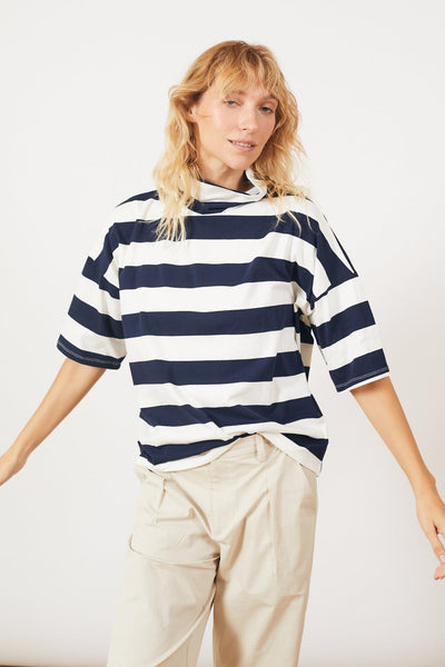 חולצת אווה - פסים שחור שמנת בשילוב כחול
