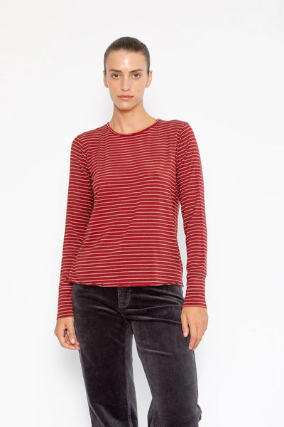 חולצת טי מושלמת ארוכה - פסים נייבי בורדו