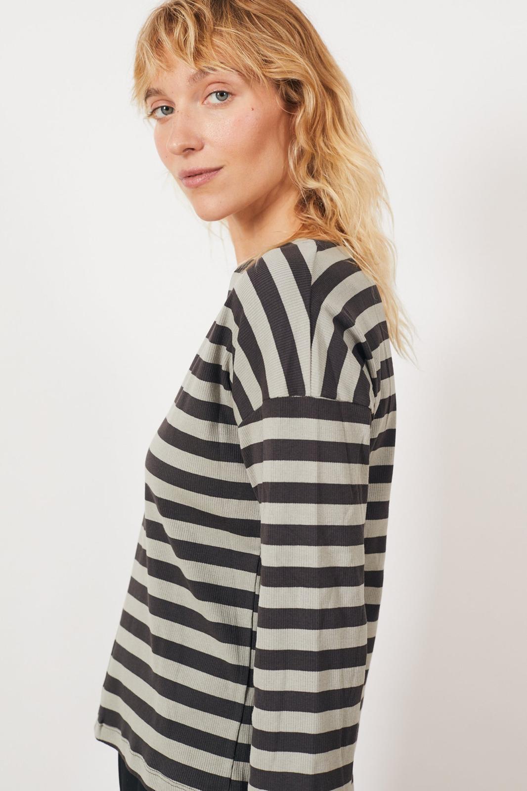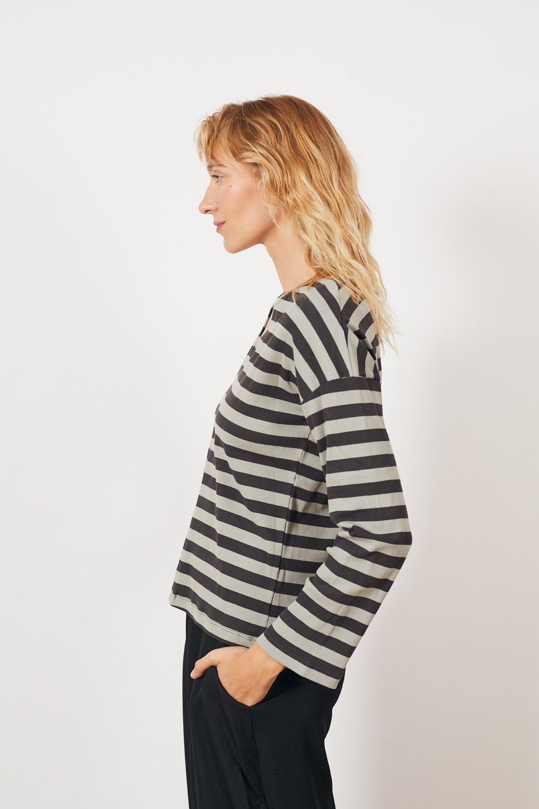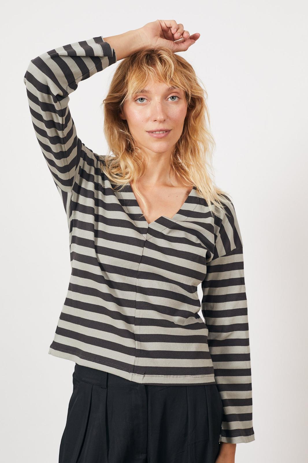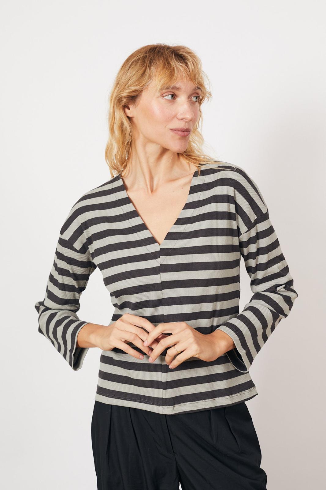 חולצת וי ריב פסים - אפור