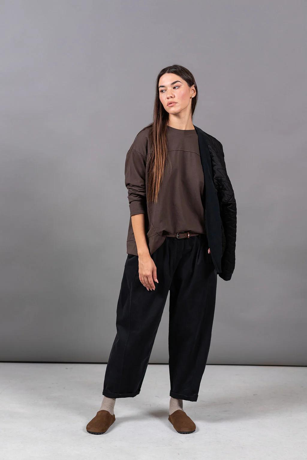 גזרה משוחררת וכפית, צווארון עגול שמוסיף טאץ עדין ומדויק.