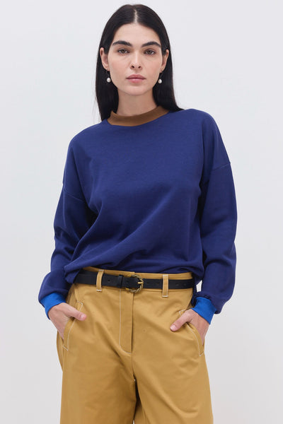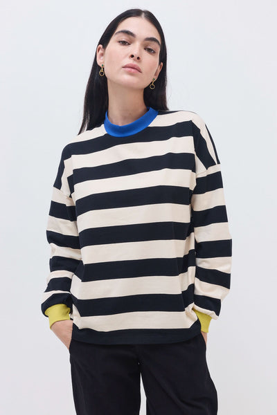 חולצת אווה - פסים שחור שמנת בשילוב כחול