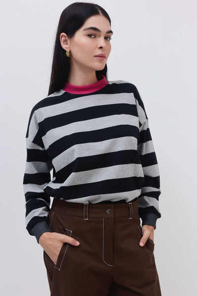 חולצת אווה - פסים שחור אפור בשילוב ורוד