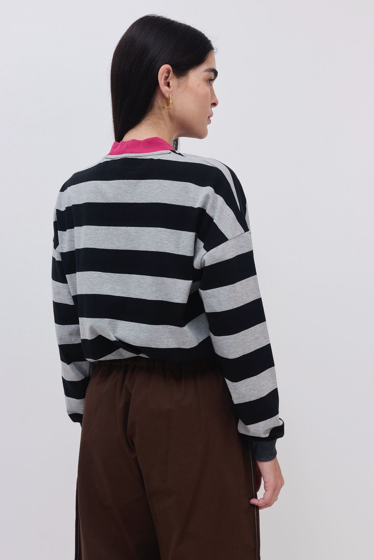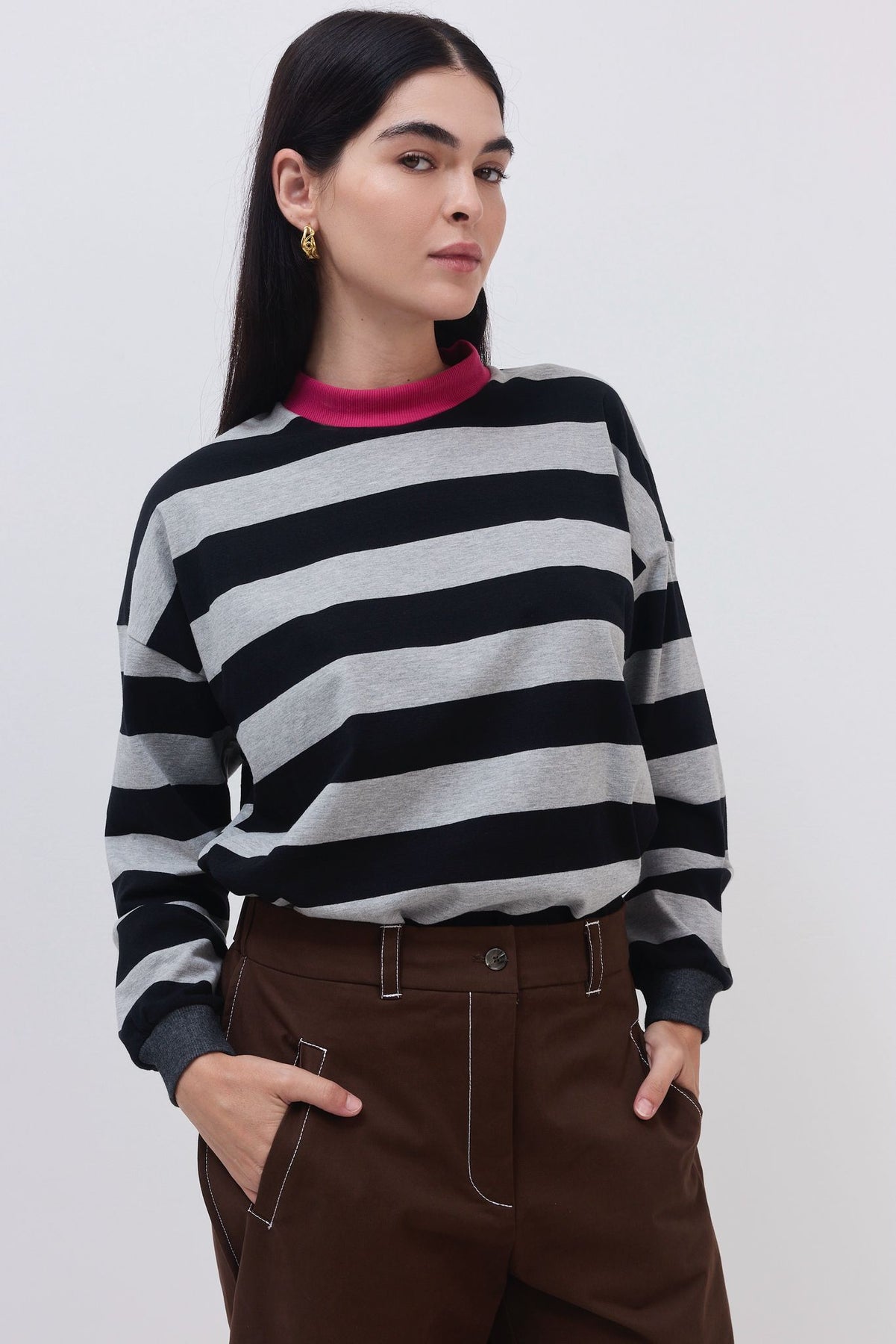 חולצת סווטשירט עם שילובי צבעים בצוואר ובידיים, לקבלת אאוטפיט יחודי