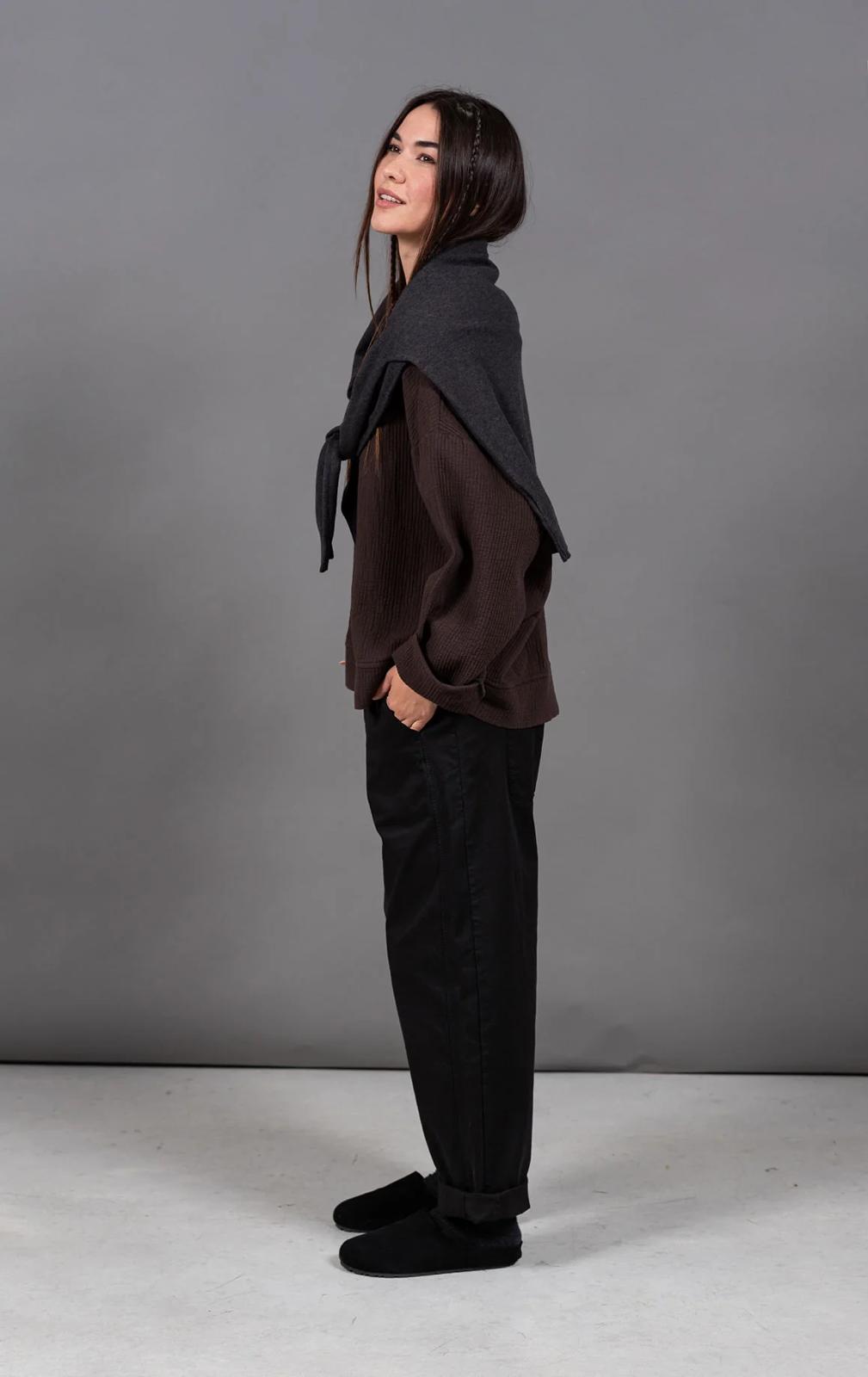 החיבור בין הטקסטורה לגזרה הפשוטה יוצר פריט טבעי ונכון לעונה.