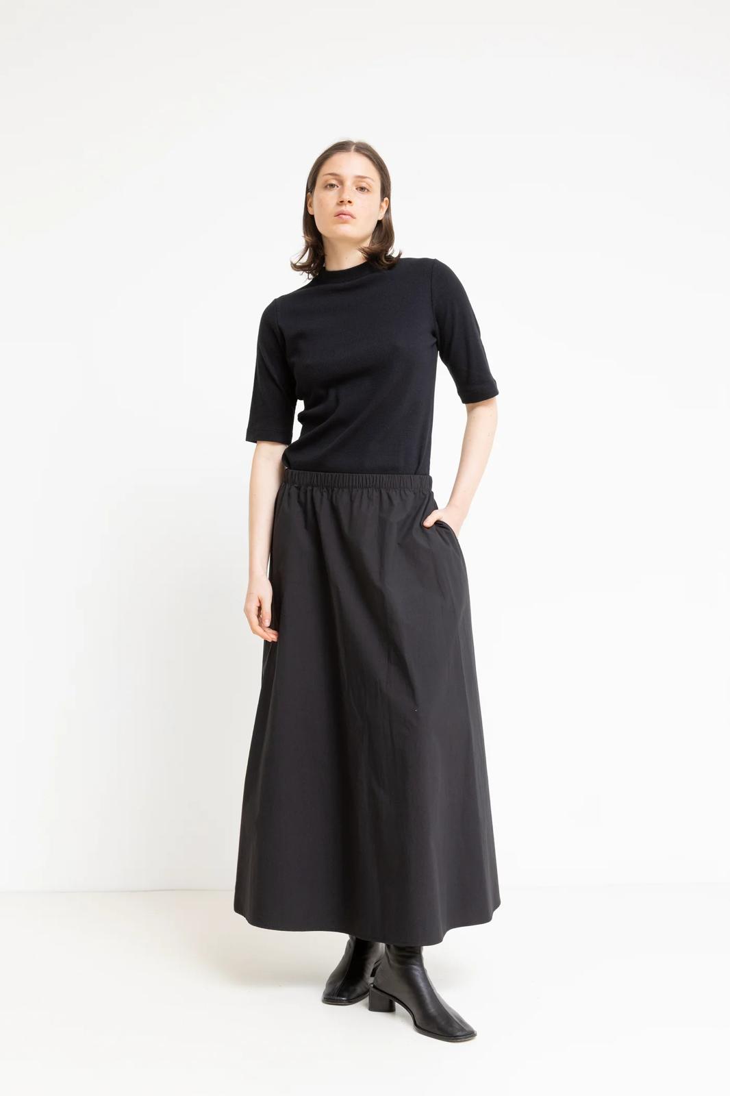 שרוולים באורך מרפק, צווארון חצי גולף. גזרה מלווה את הגוף.