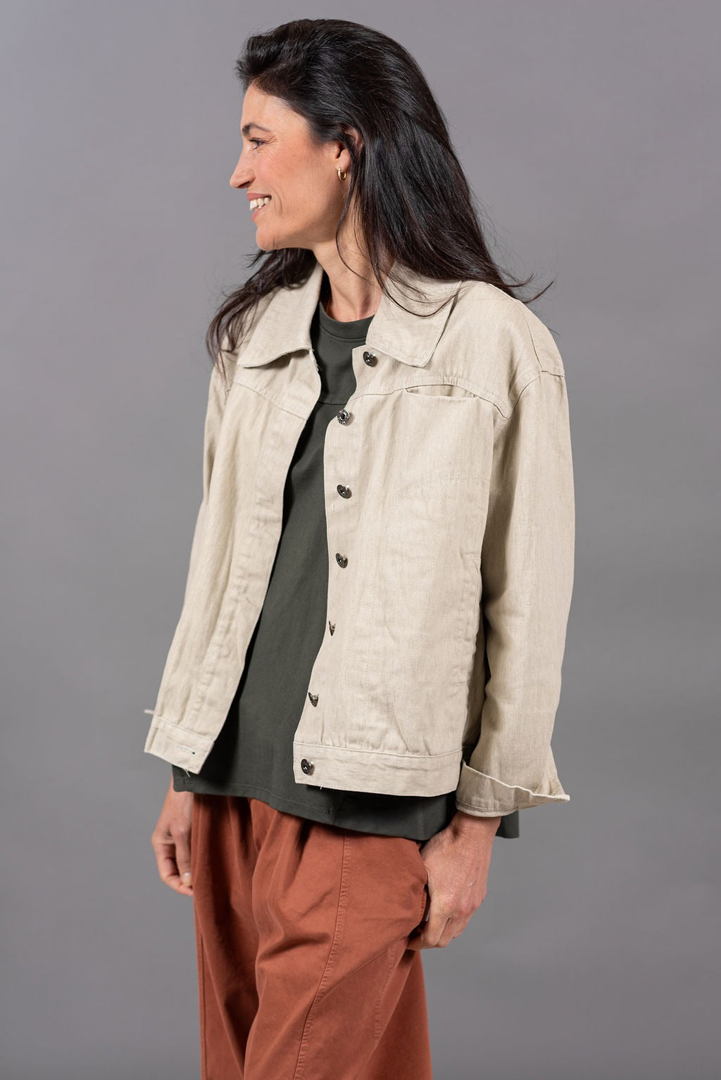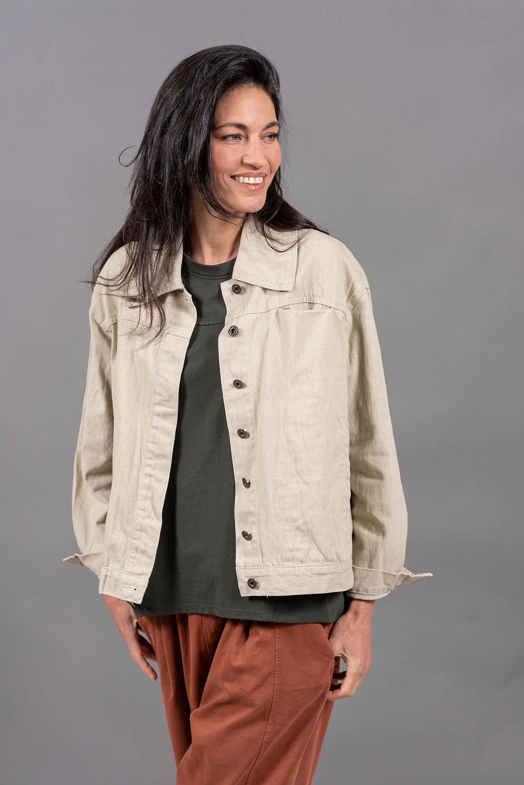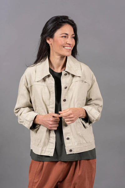 ג'קט בגזרה נקייה, משוחררת וקלילה. תיפורים יחודיים שמוסיפים מגע עיצובי ואמירה בלתי מתפשרת.