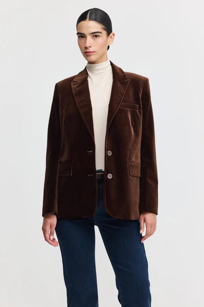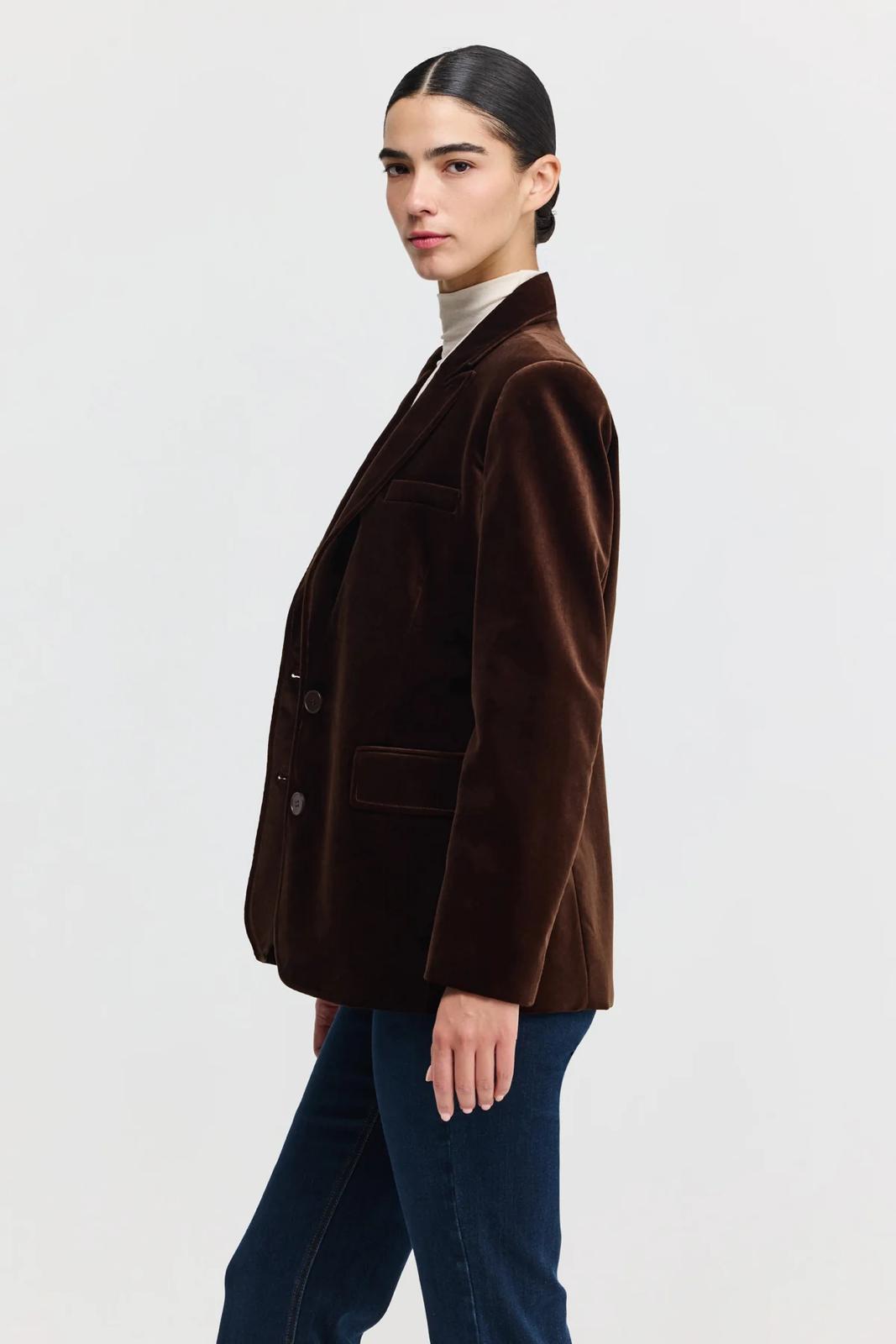 ג'קט קלאסי במרקם קטיפתי, בעל גזרה קלאסית עם טויסט מודרני.