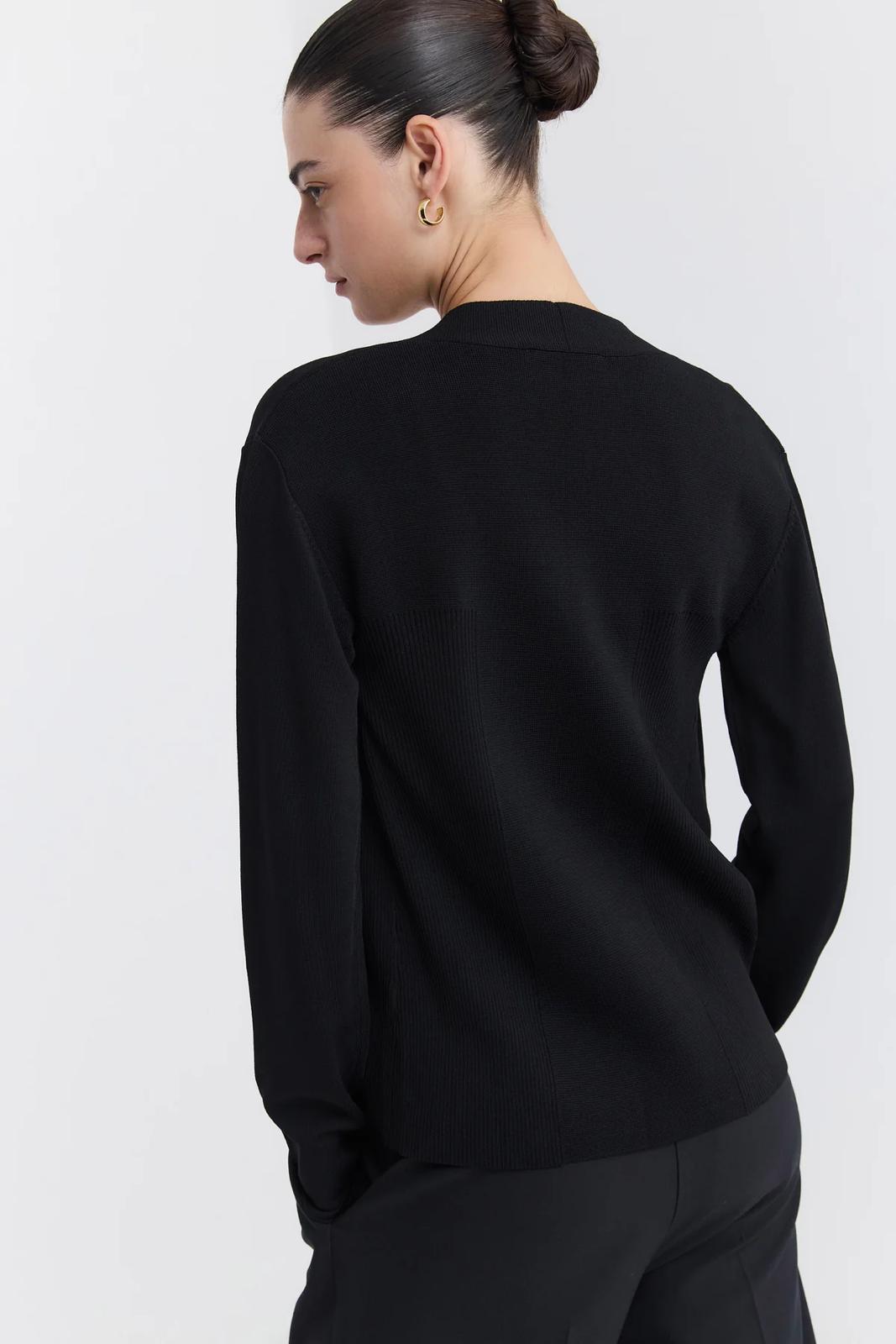קרדיגן סריג פתוח בגזרה ישרה ונקייה , עם מפתח קדמי פתוח ללא סוגר. הבד עשיר ונעים למגע , עם משחקי טקסטורה עדינים, המוסיפים עניין מבלי לגנוב את הפוקוס. מושלם לסגנון של שכבות, במראה אלגנטי ויומיומי גם יחד.